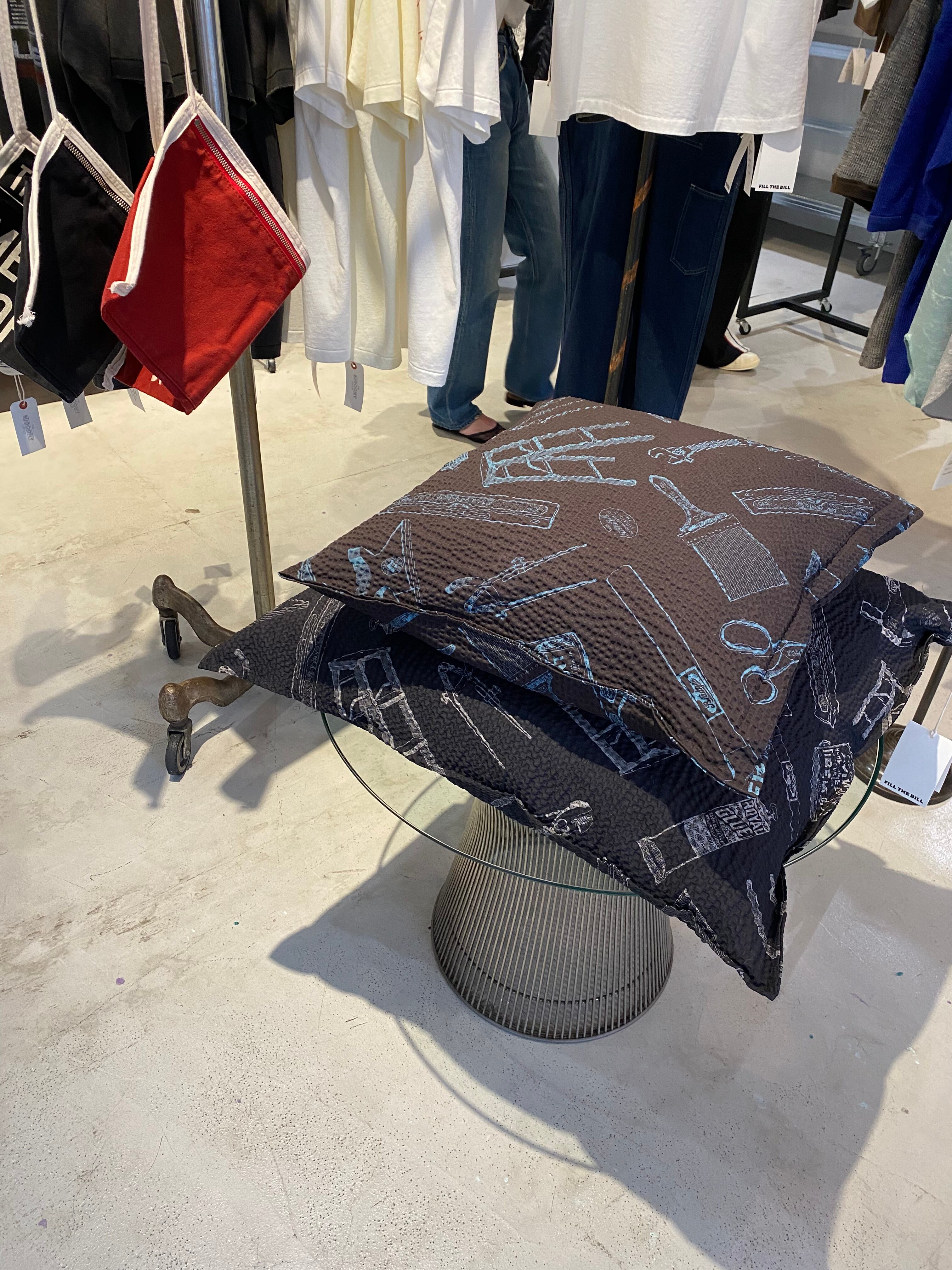 オリジナル生地を用いたシアーサッカークッション。