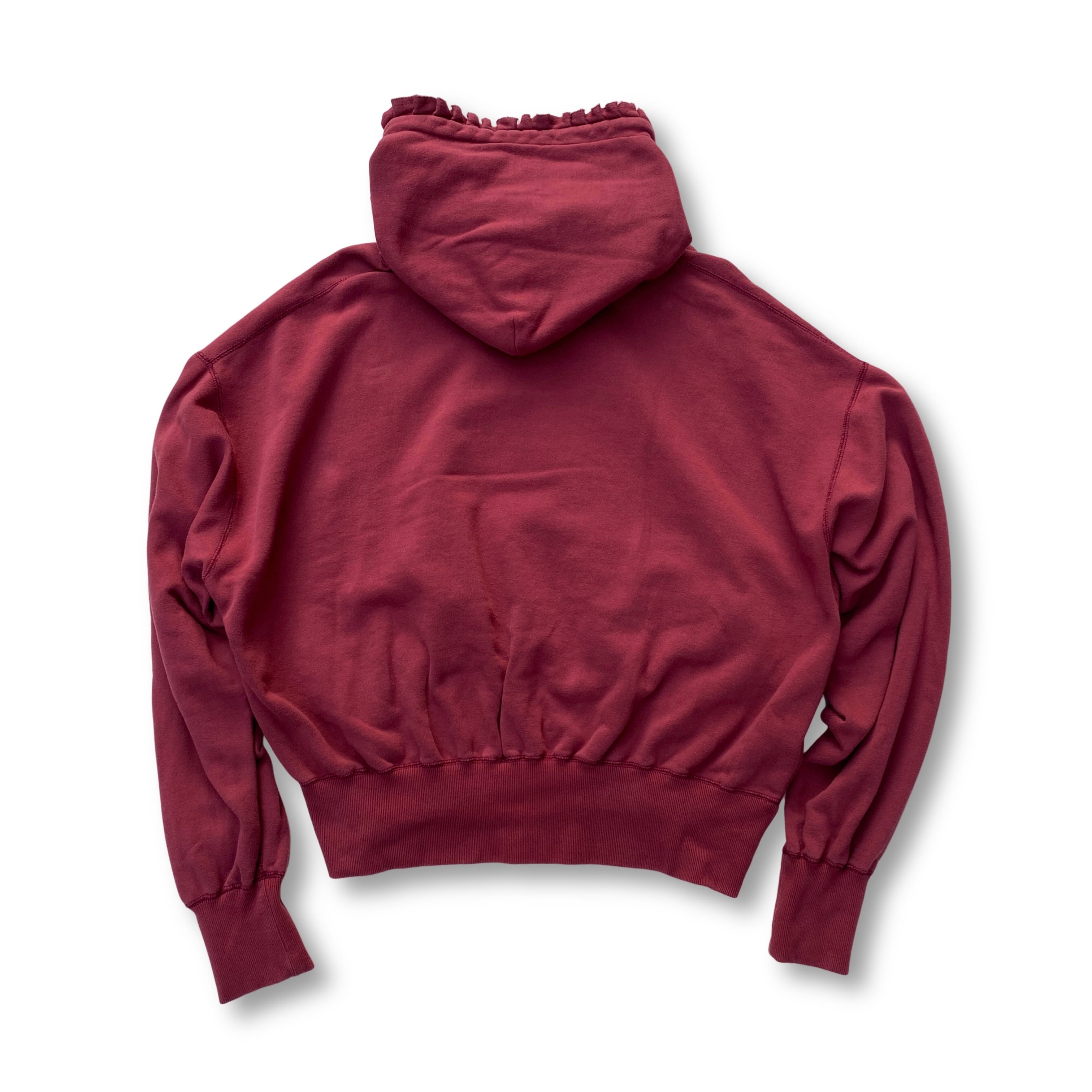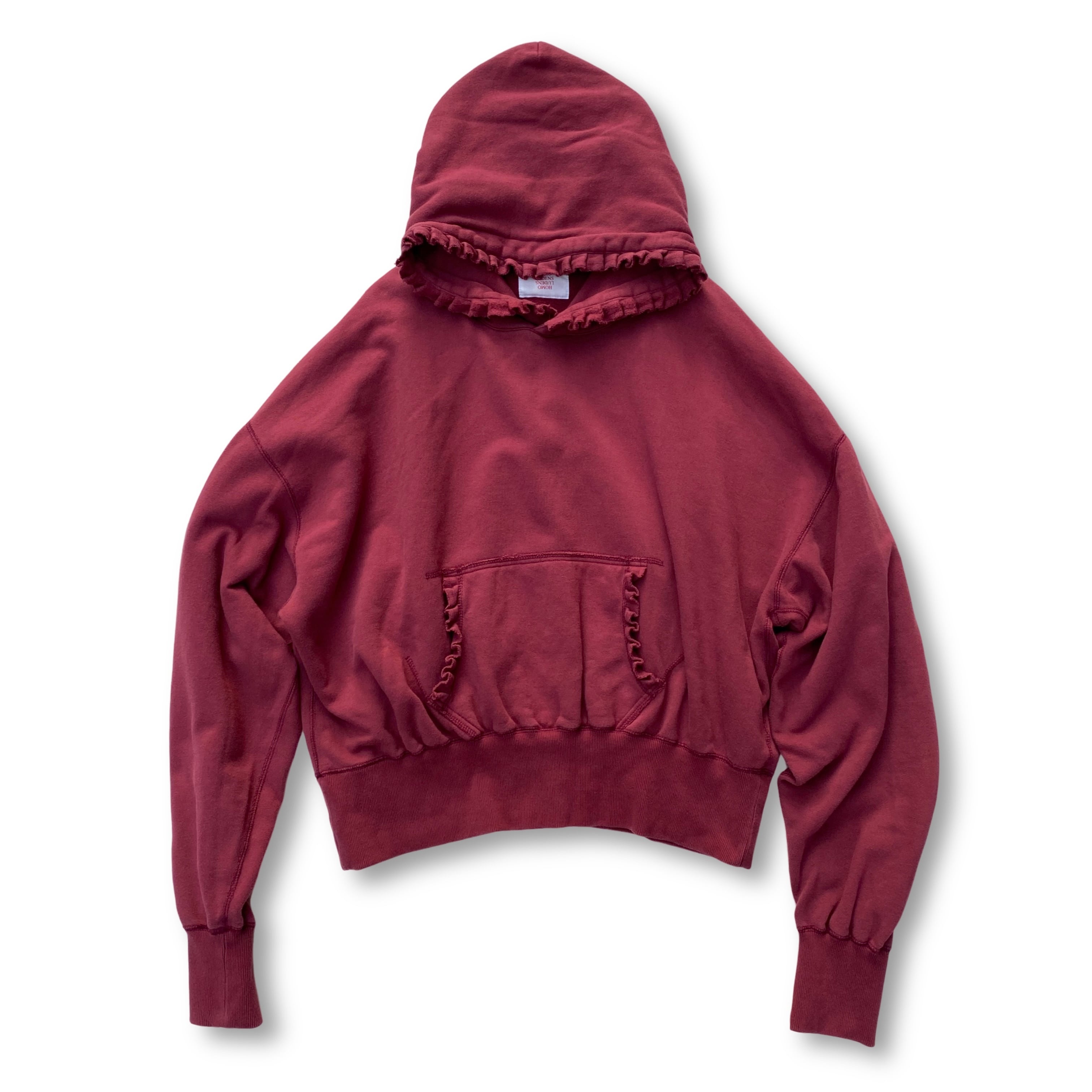 ピエロ衣装の象徴的な タックフリル をパーカーのディテールとして採用した、これまた特殊なシルエットのフーディー。