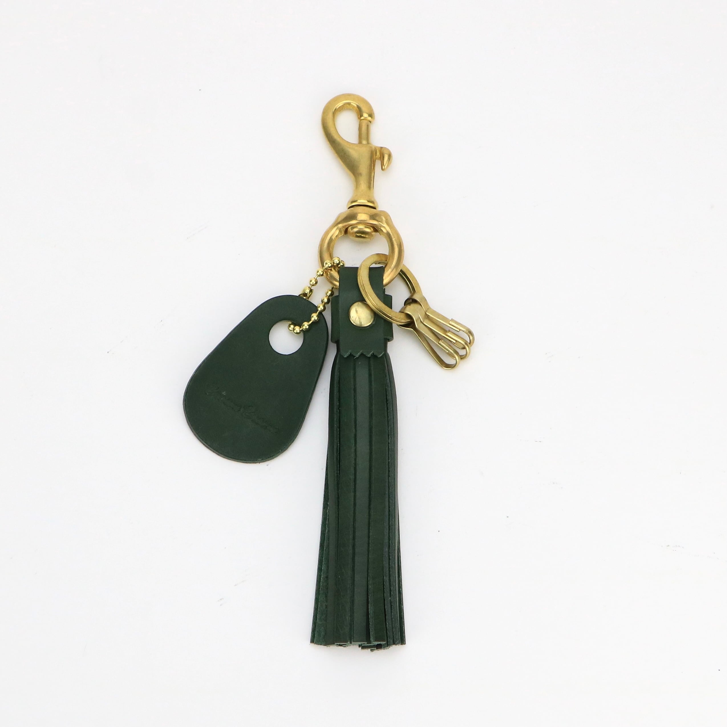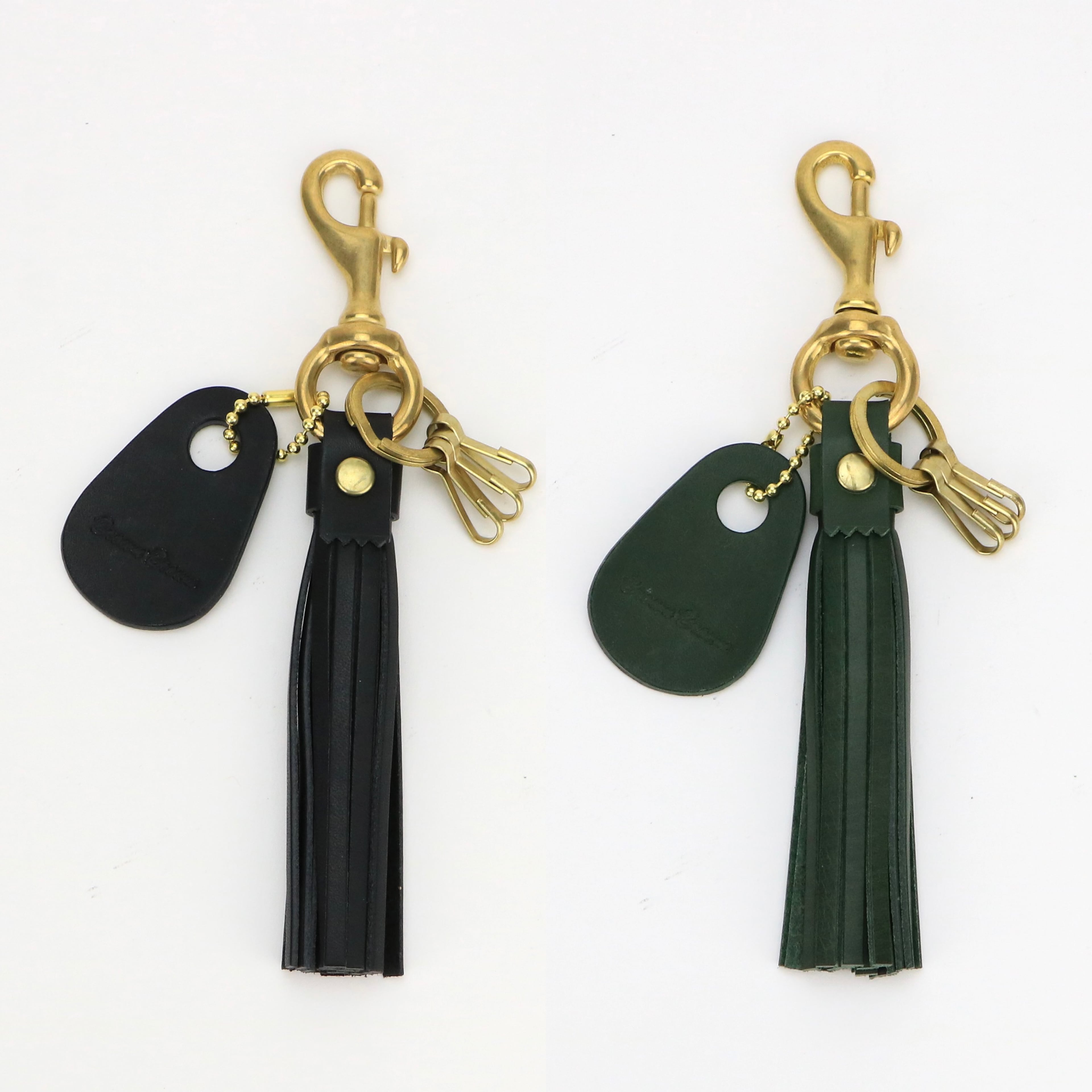 大ぶりなレザー製フリンジが特徴的なキーリングカラビナ。