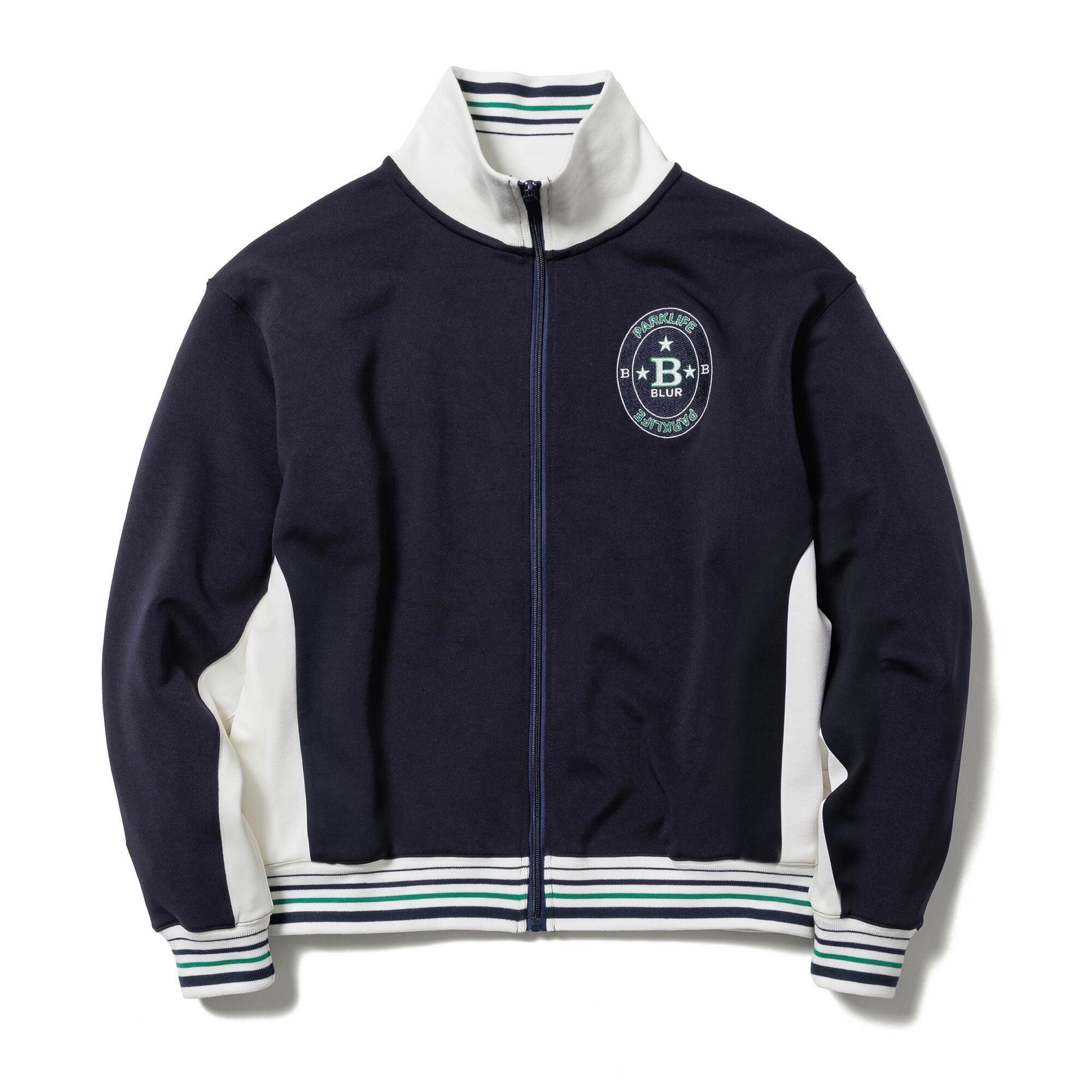 スタンドカラーのトラックジャケット。