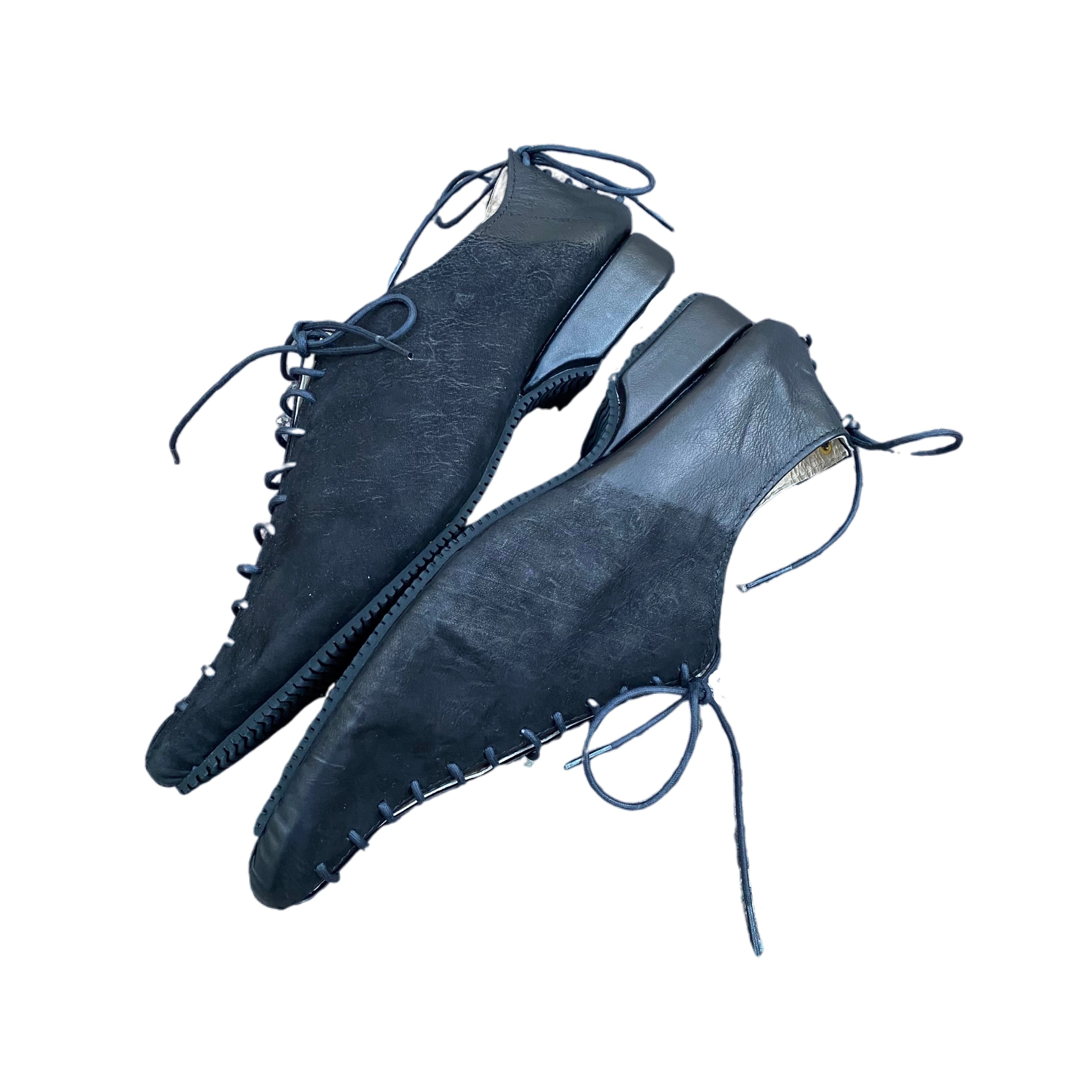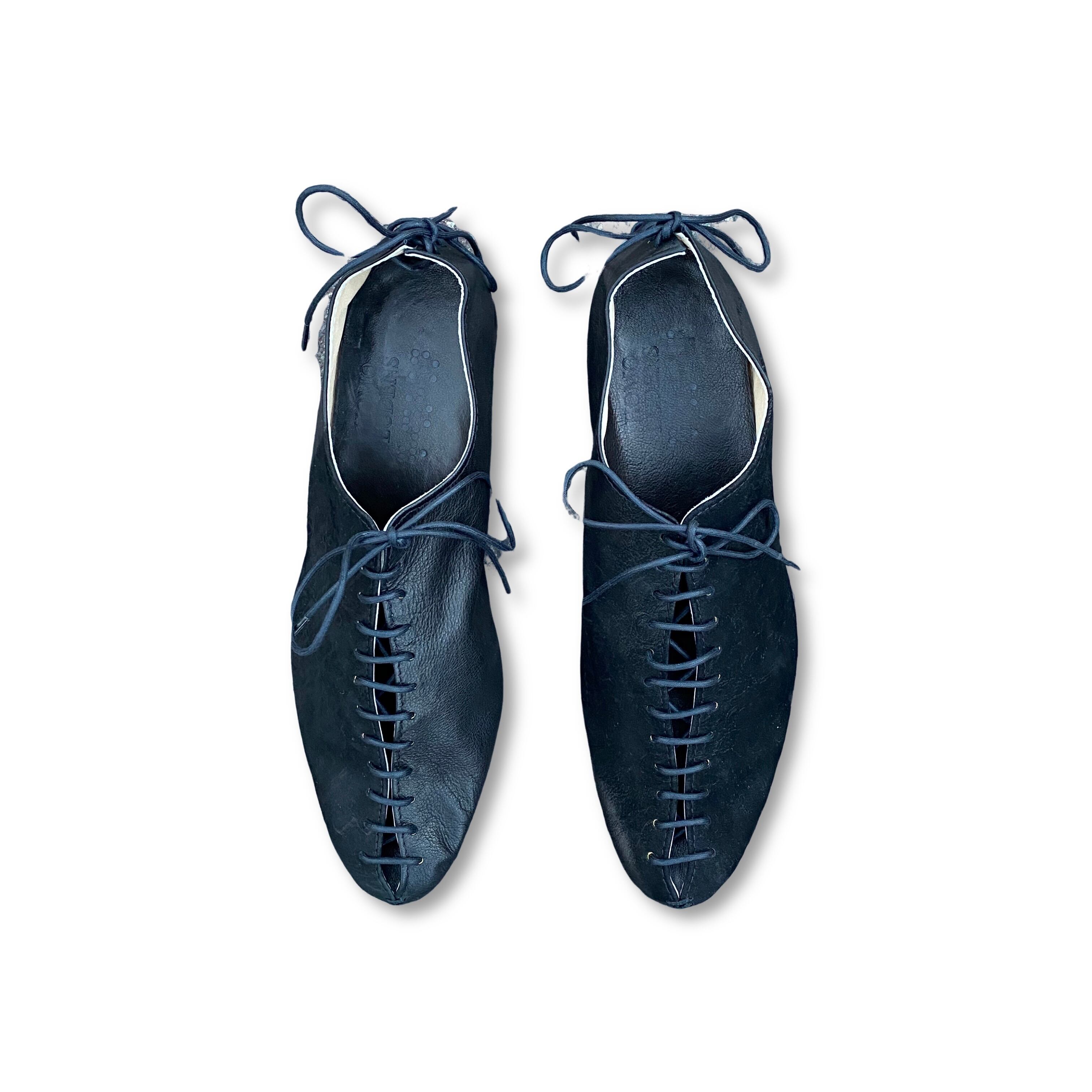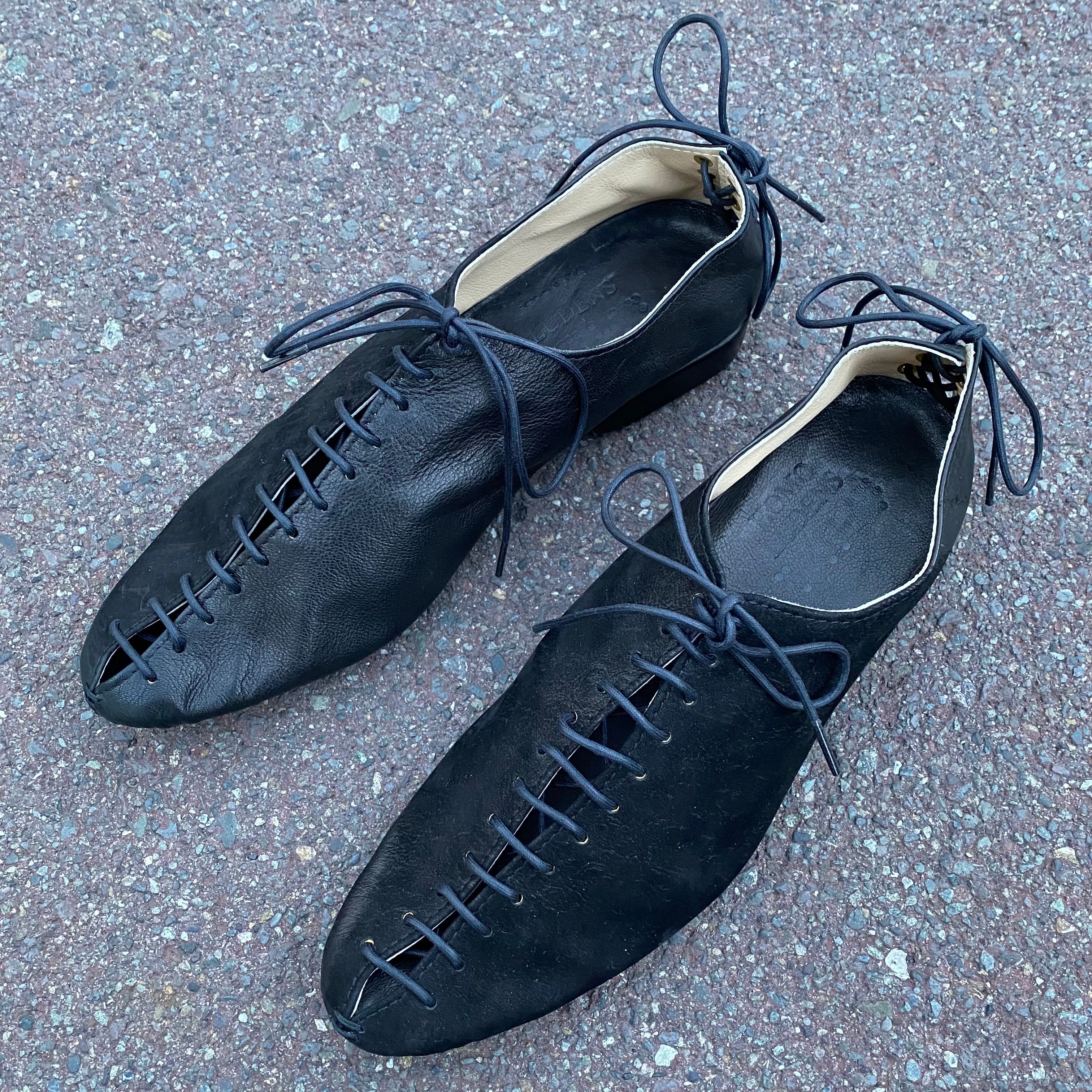 ベースはバレエシューズからオマージュし、今季コレクションテーマである " The Veil " に沿った道化師の雰囲気をプラスした逸品。