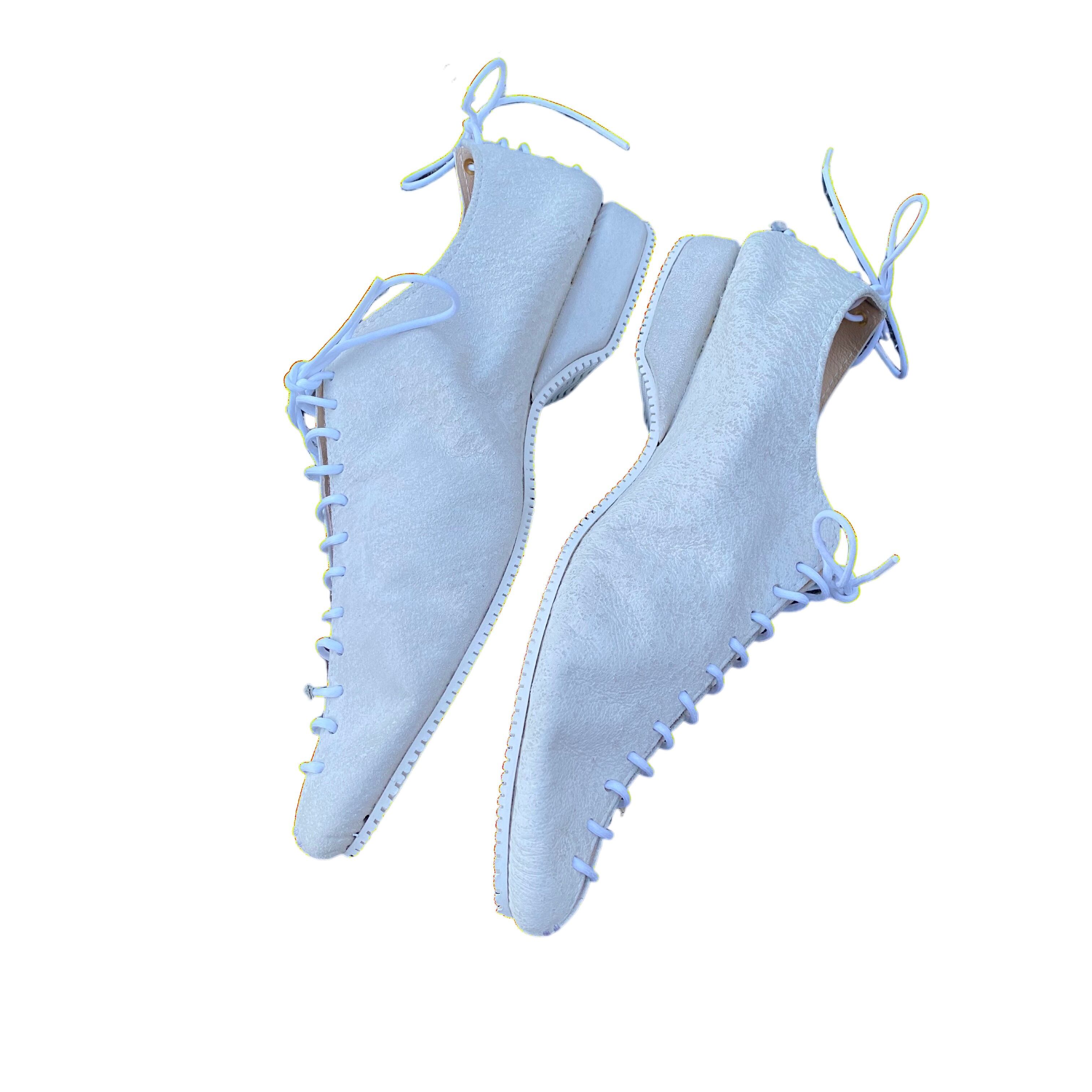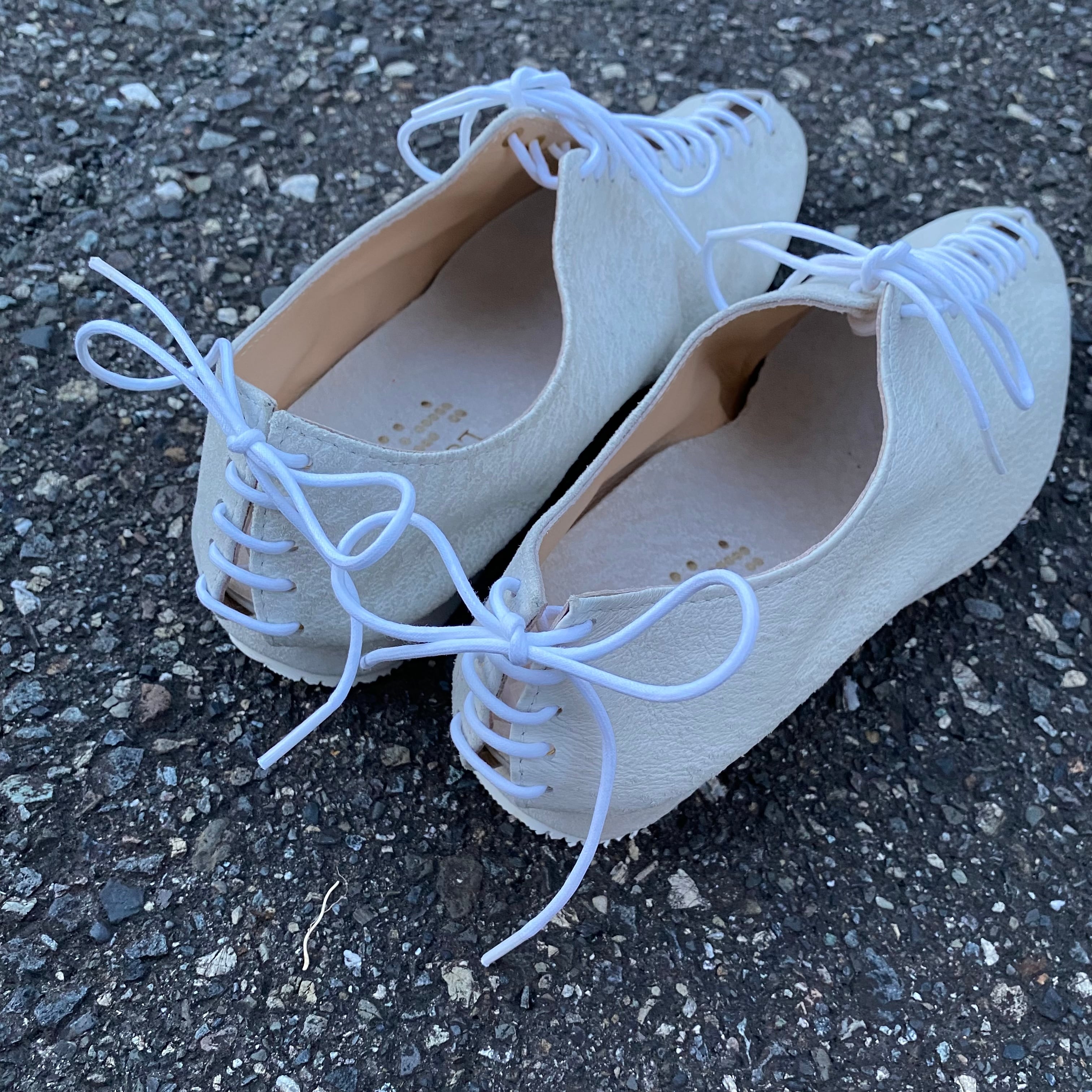 ベースはバレエシューズからオマージュし、今季コレクションテーマである " The Veil " に沿った道化師の雰囲気をプラスした逸品。