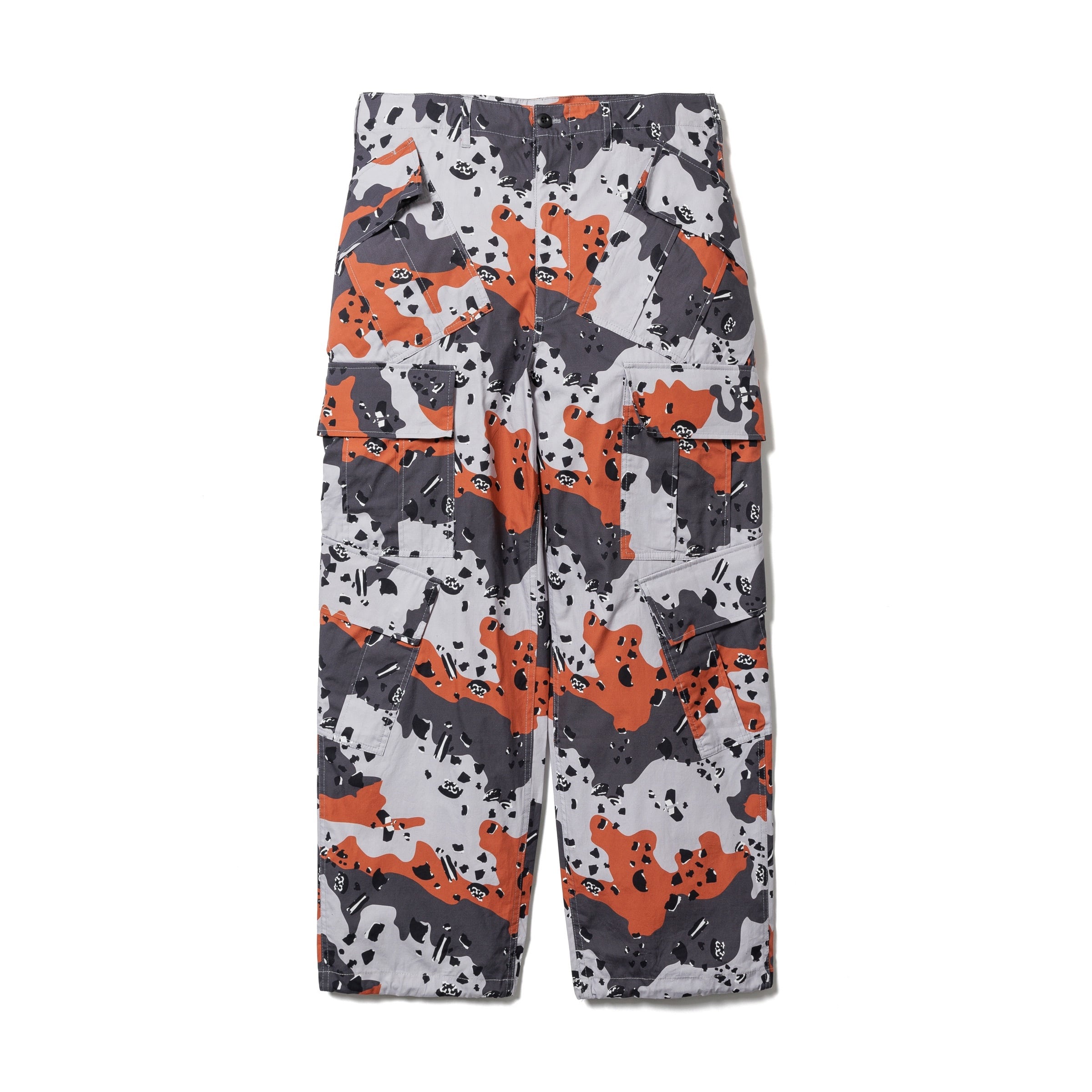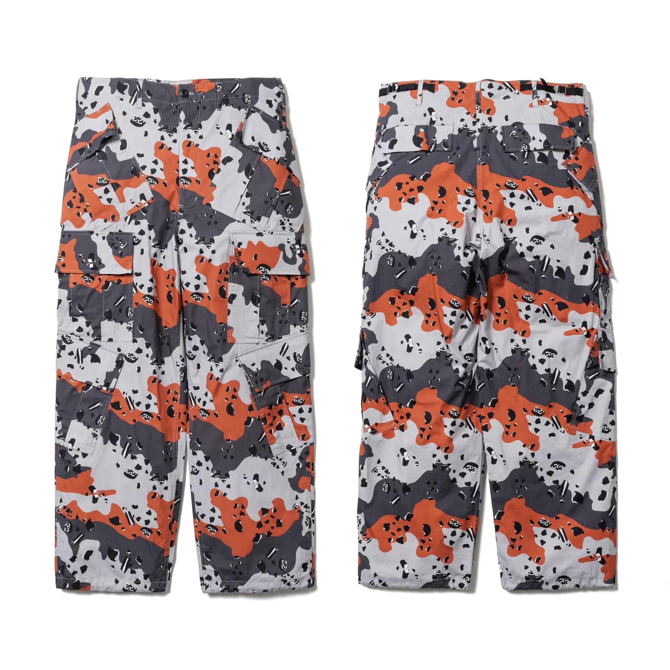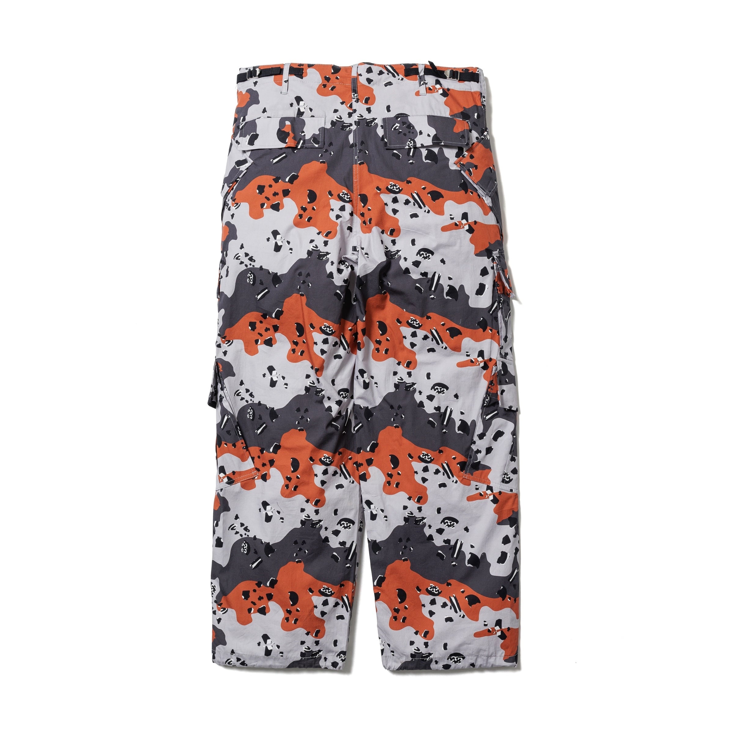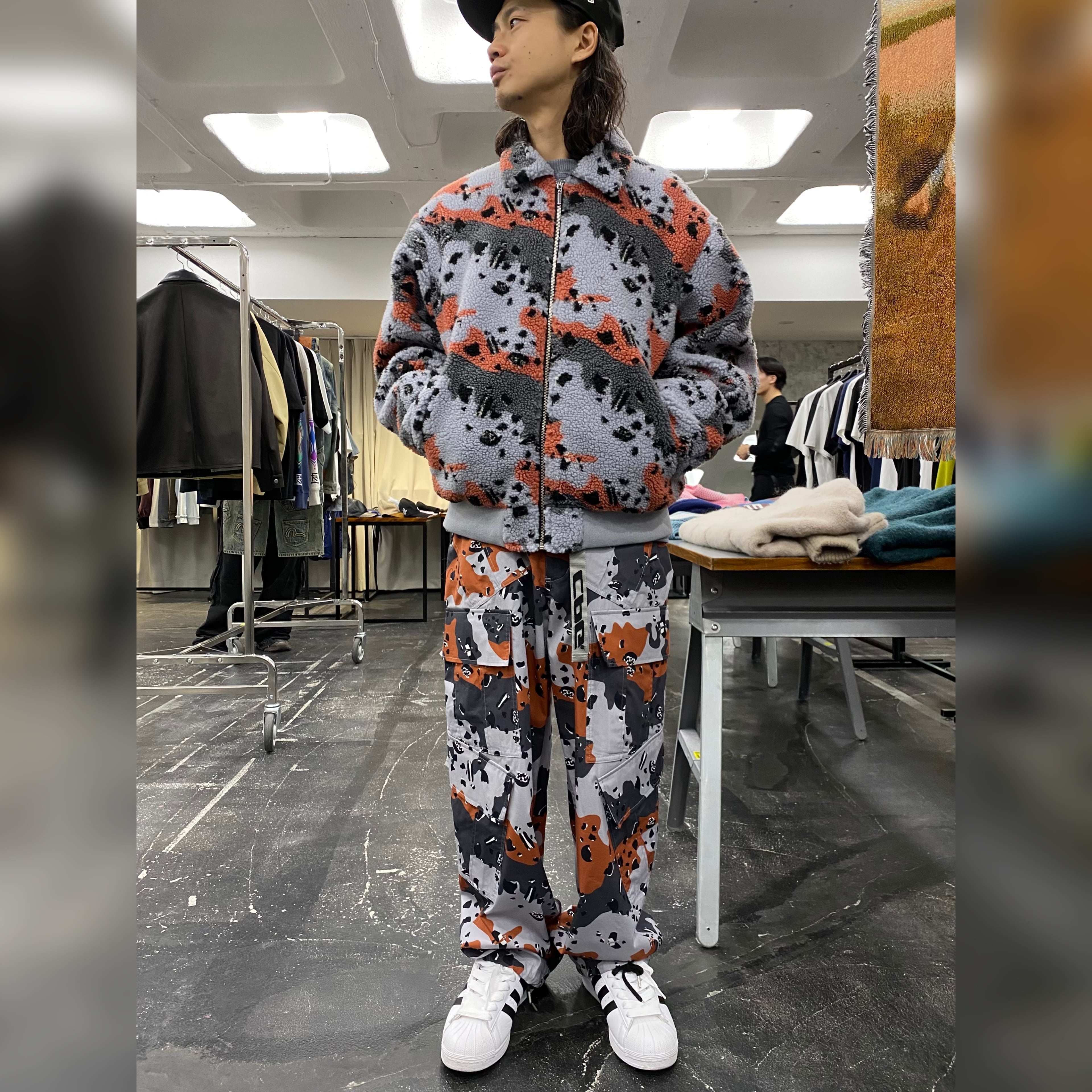 ヴィンテージミリタリーで通称"チョコチップ"と呼ばれるデザートカモをサンプリングし、オ◯オやキット◯ット砕いてアートワークに落とし込んだ真の意味で「チョコカモフラージュ」なオリジナルファブリック仕様!