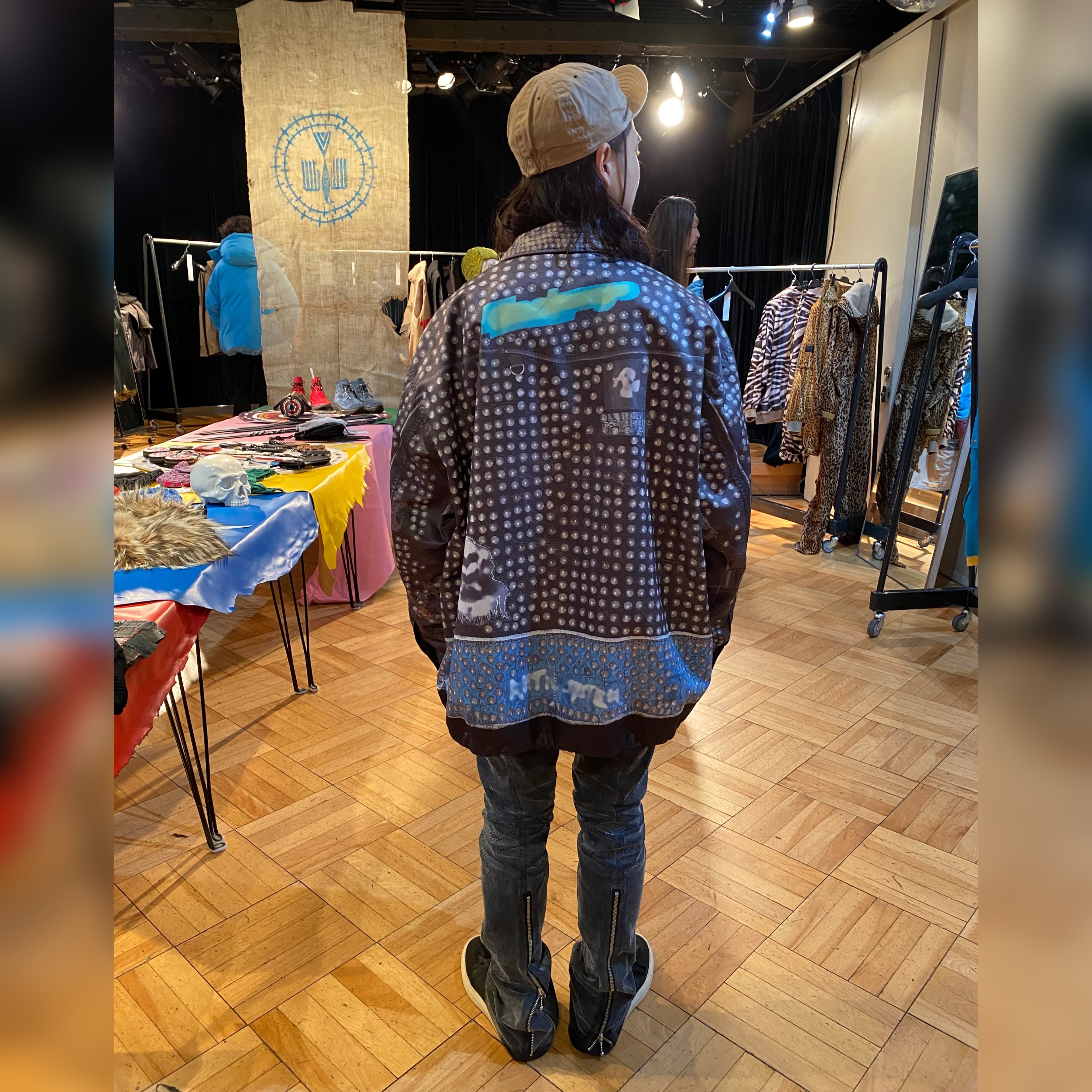 独創的且つ芸術性の高いスタッズカスタムレザーライダース"鋲ジャン"をハンドメイドで制作する、90年代初頭からシーンでは名物級な人気を誇る大阪のレジェンドハードコアパンクスOG D.I.Y. PUNK MASTER シガちゃん(SHIGA-chang)氏の通称『シガジャン』を、ブラックミーンズの得意とする転写プリントにて落とし込んだ