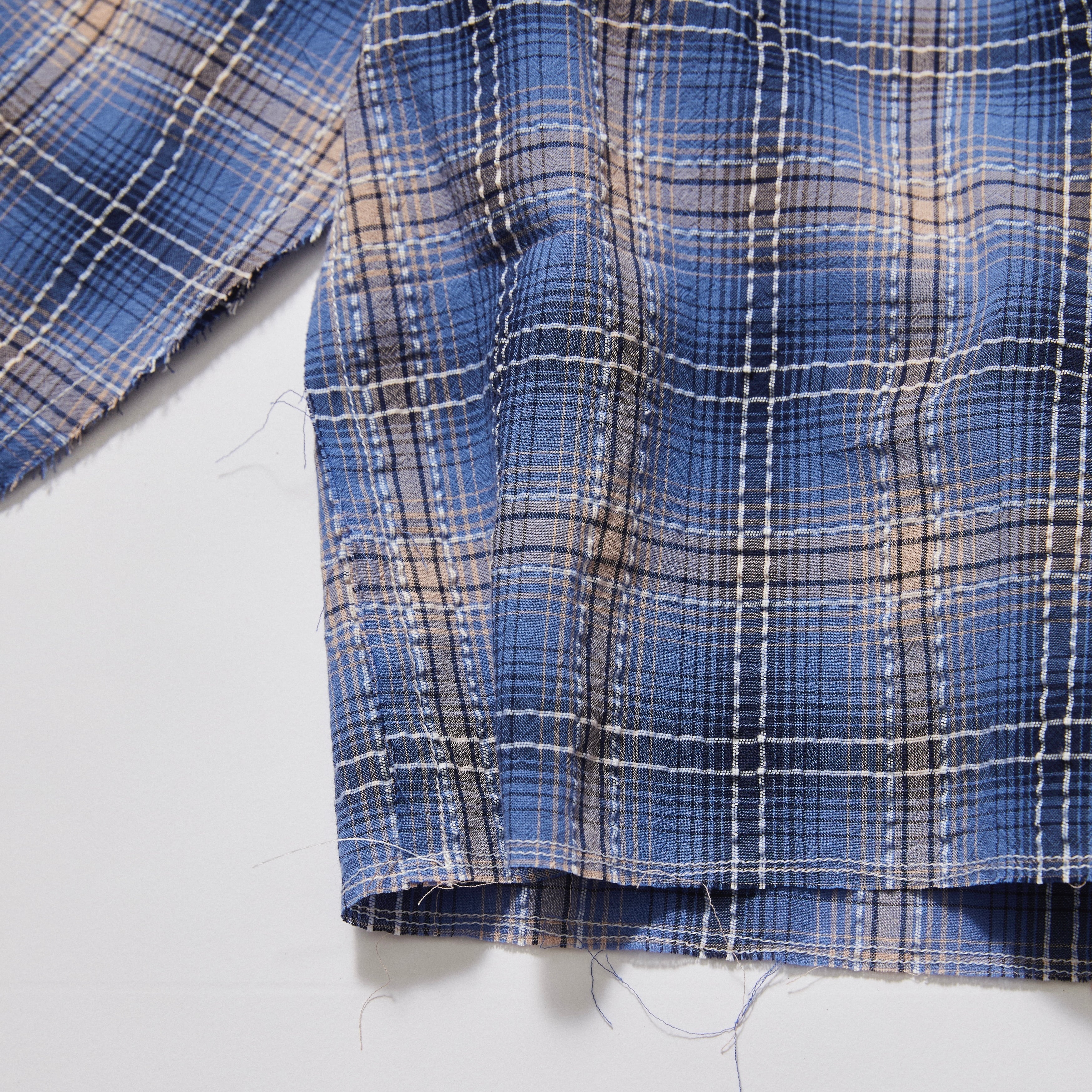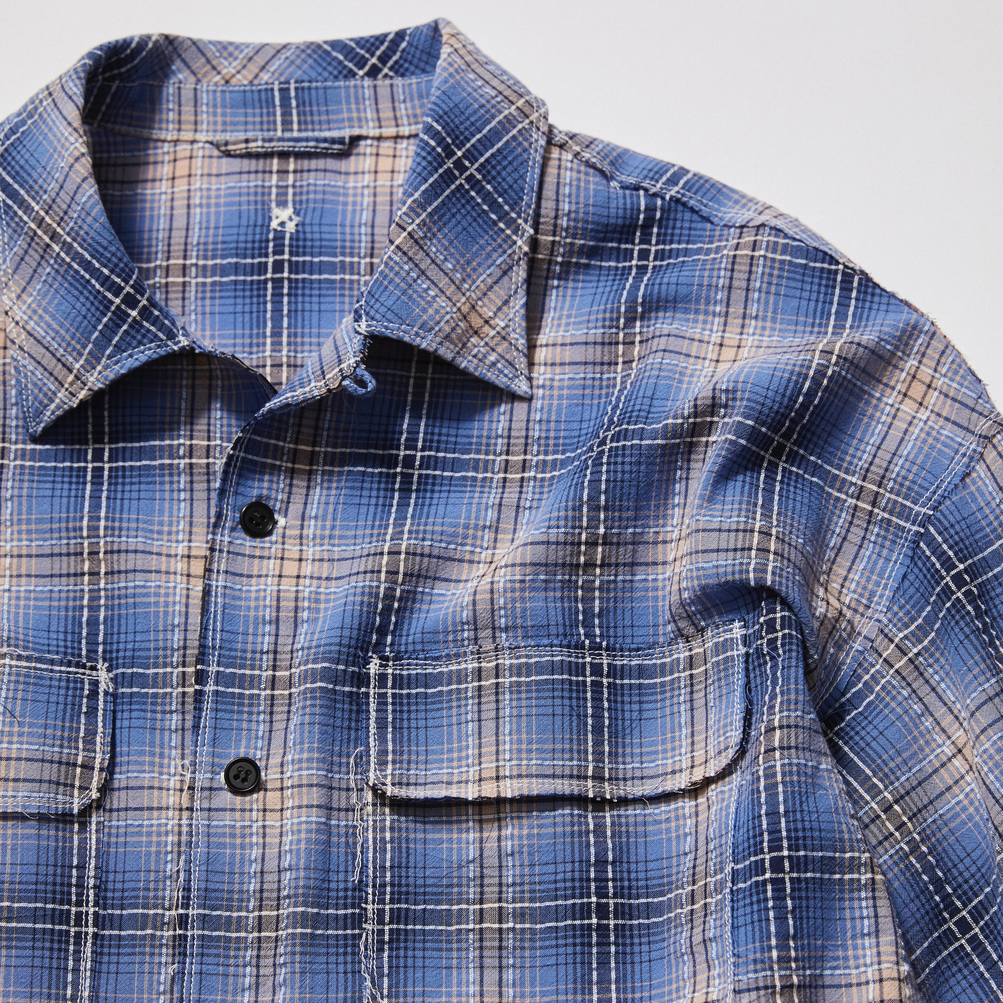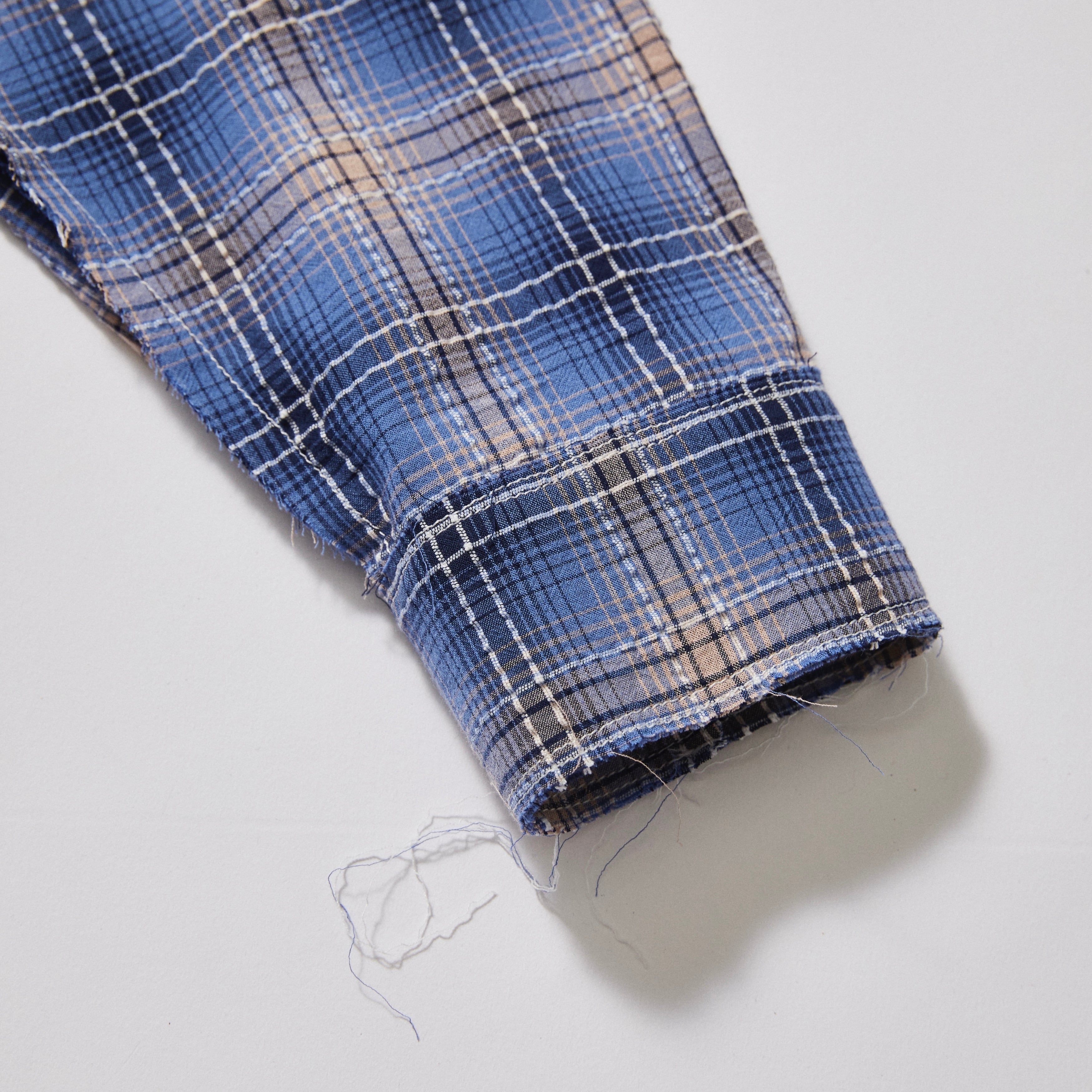このシャツの最大の特徴は、カットオフとYOROKEステッチ。一つひとつ職人の手で仕上げられており、全く同じものは存在しません。唯一無二の風合いが、着るたびに愛着を増していきます。