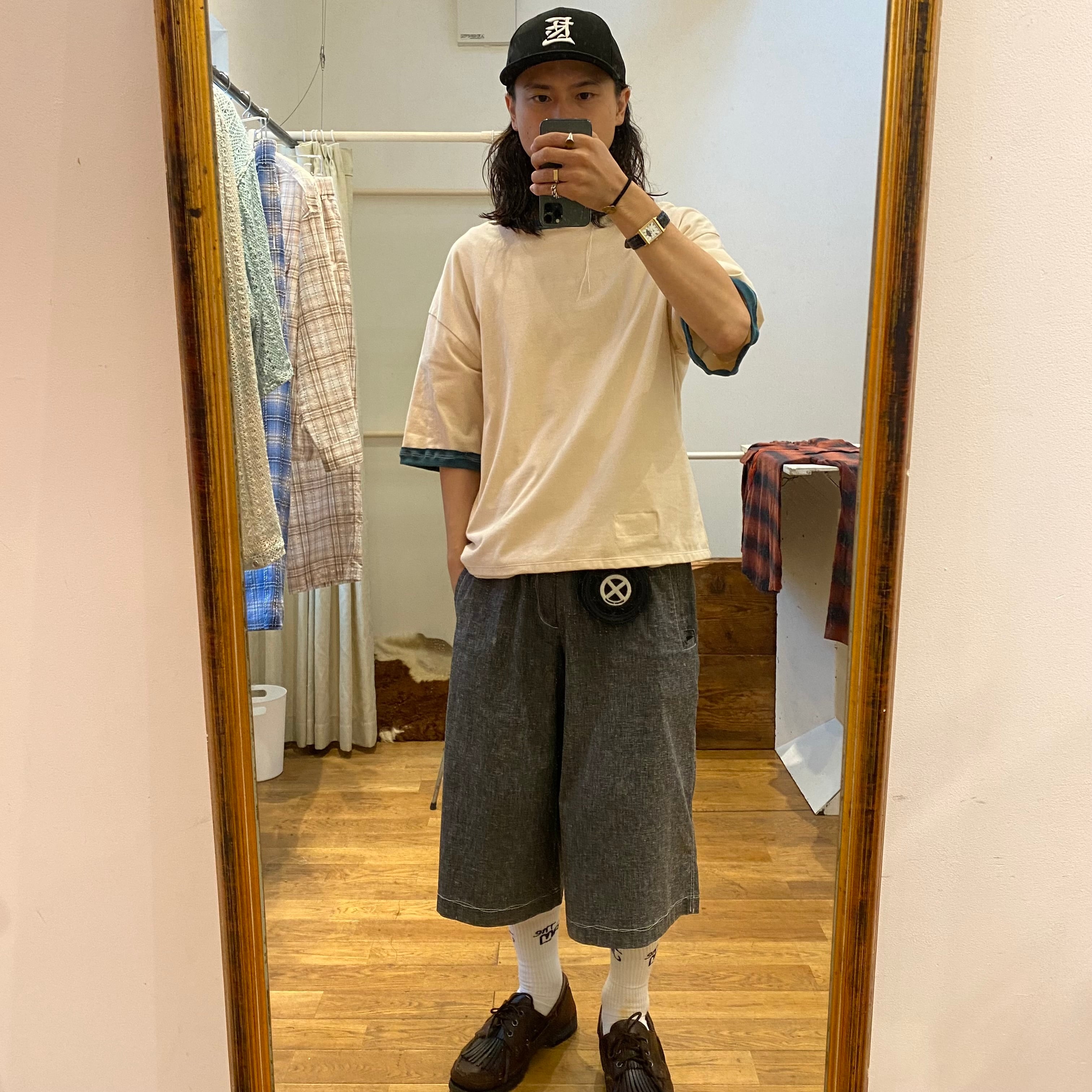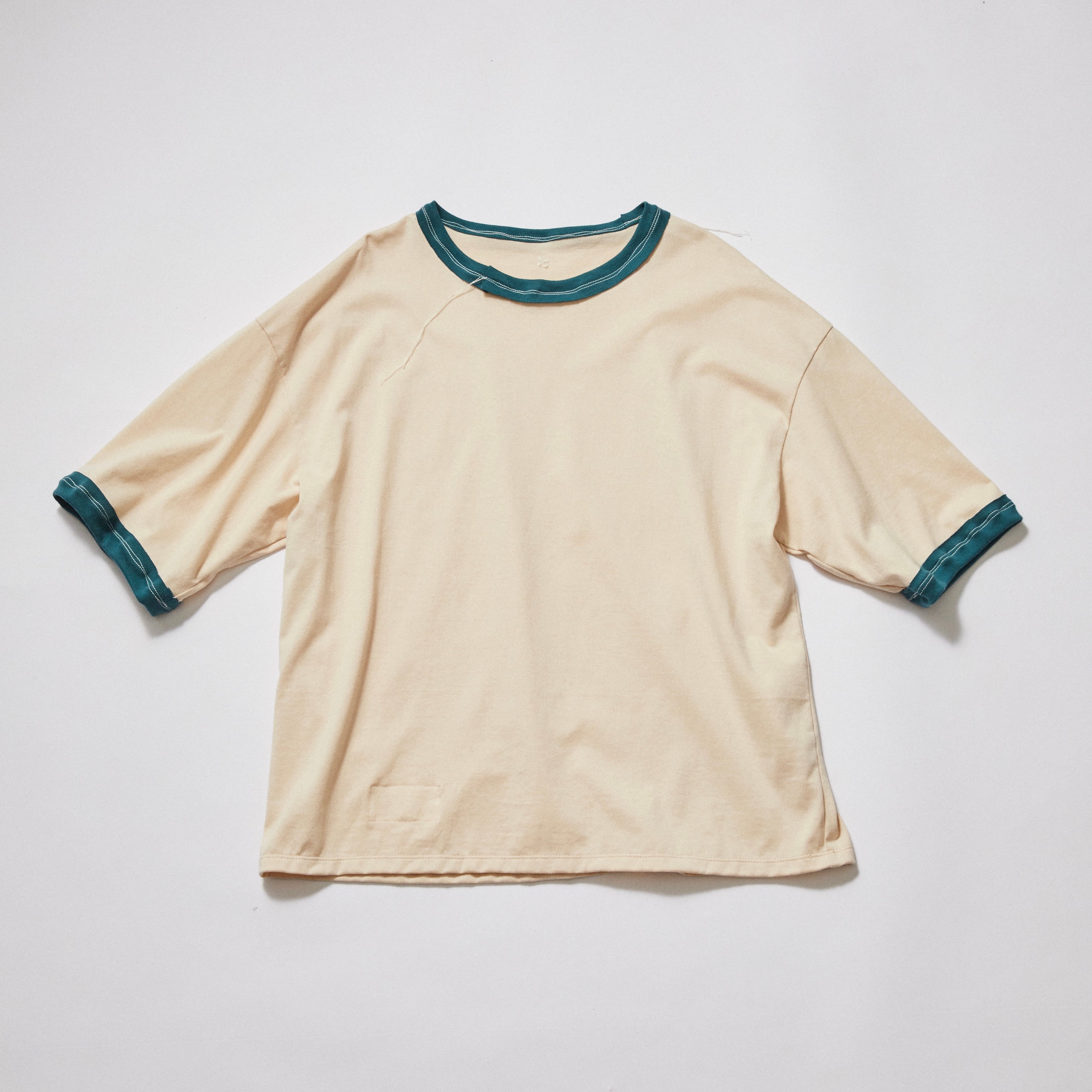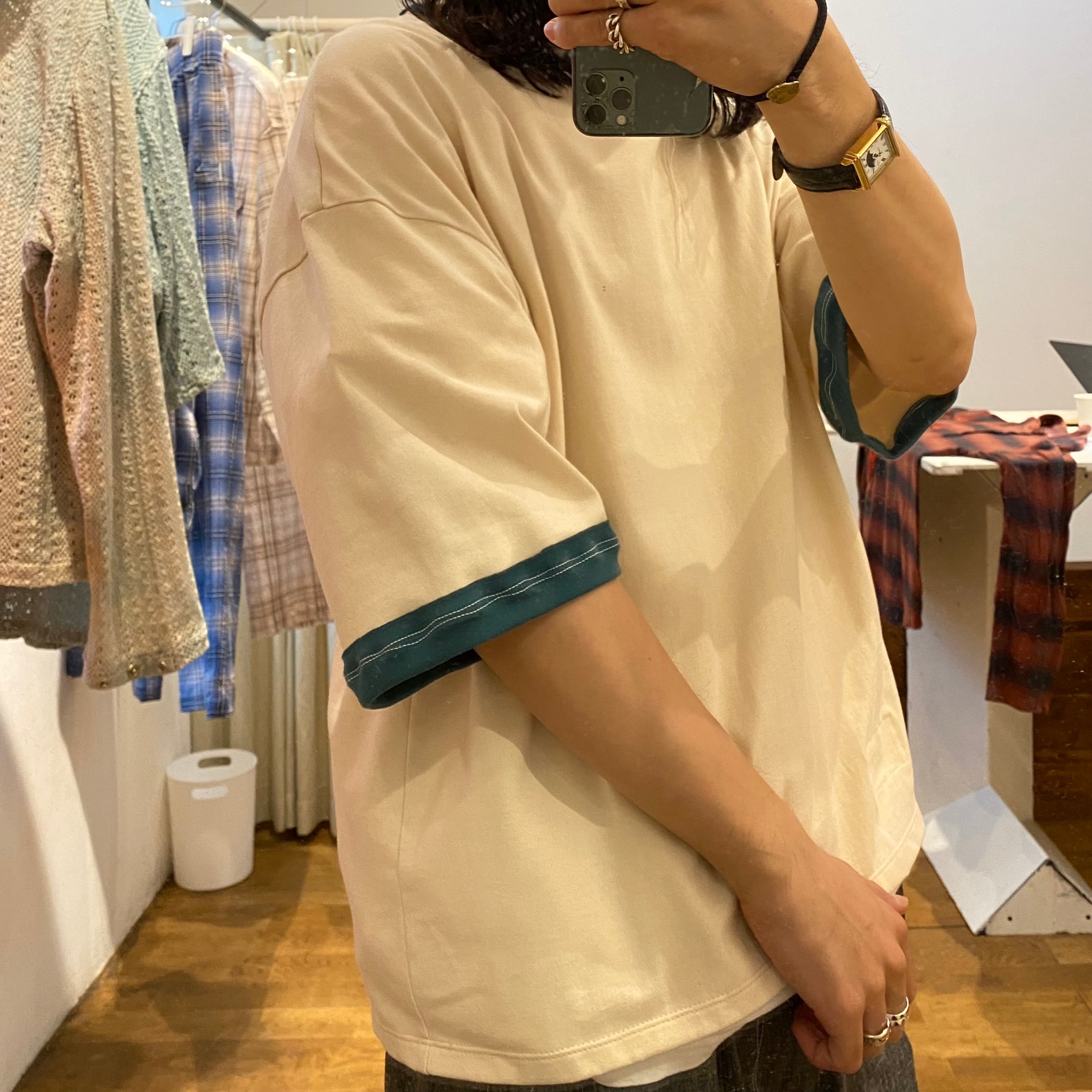無造作ではなく緻密に計算された切り替えによって、スタンダードをズラしつつも絶妙なバランスを確立。日常に馴染むシンプルさの中にモード的な違和感を共存させたデザインTEEです。