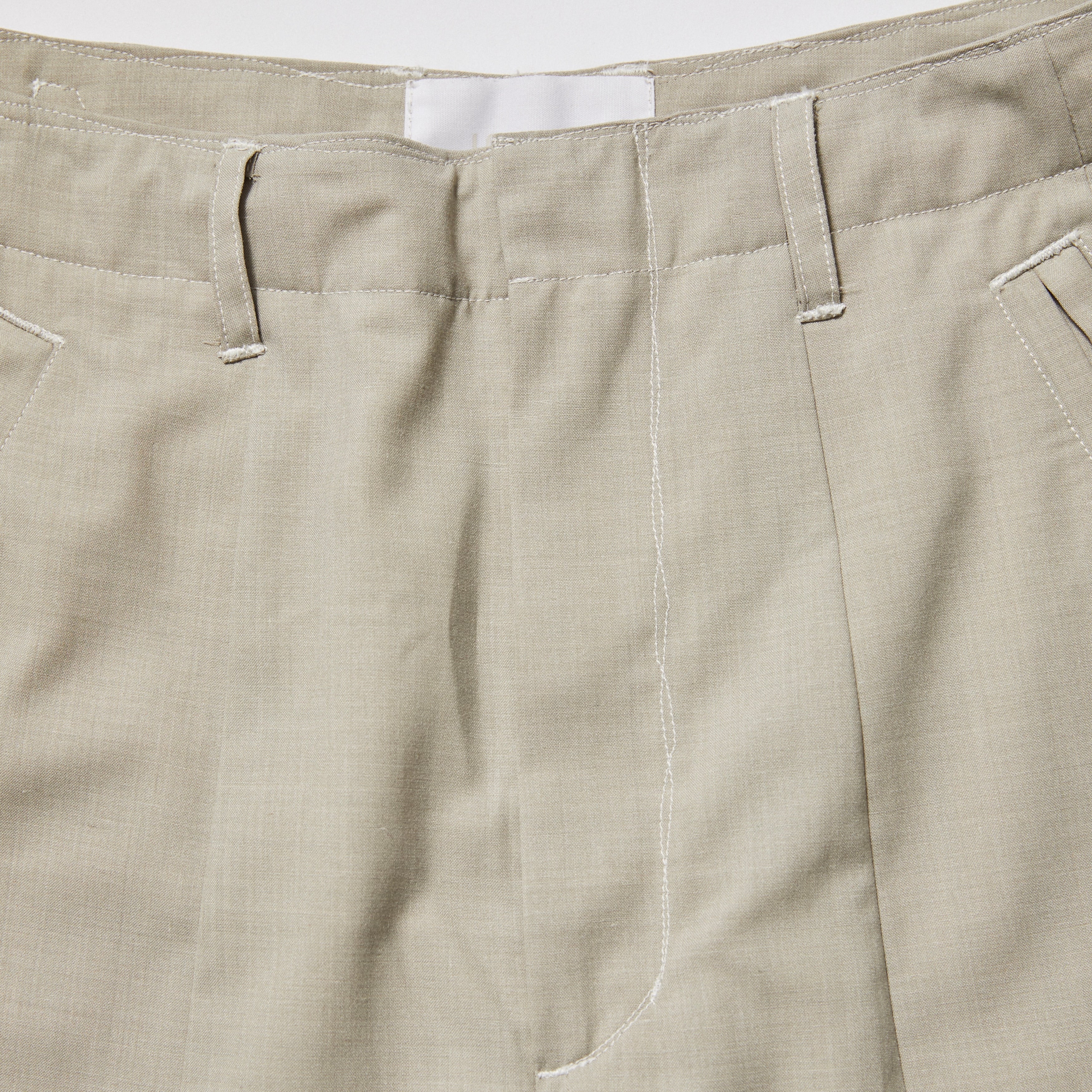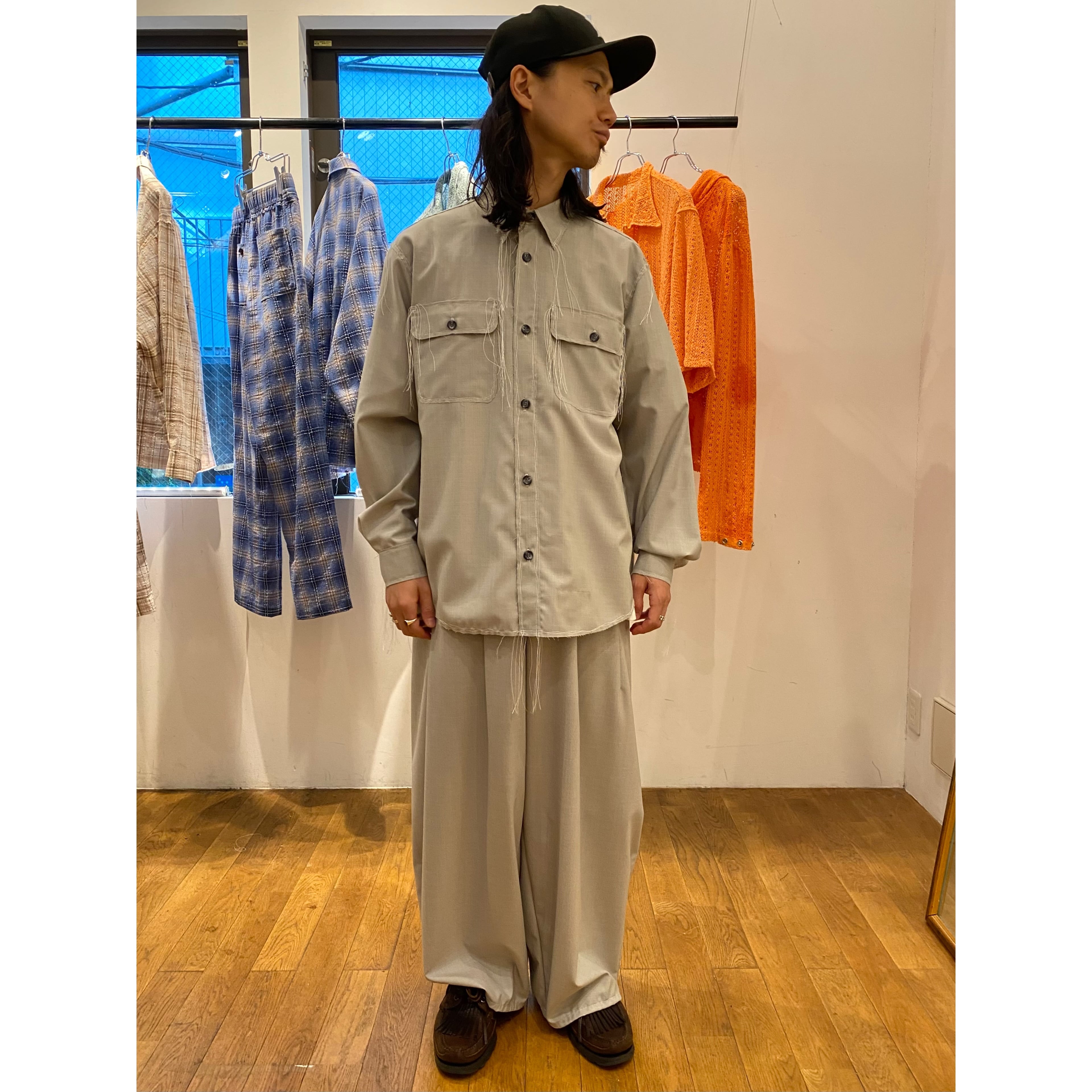 裾はモーニングカット仕様。ワイドシルエット特有の裾のもたつきを抑え、ブーツ・スニーカー共に相性良くスッキリとした足元を演出しています。