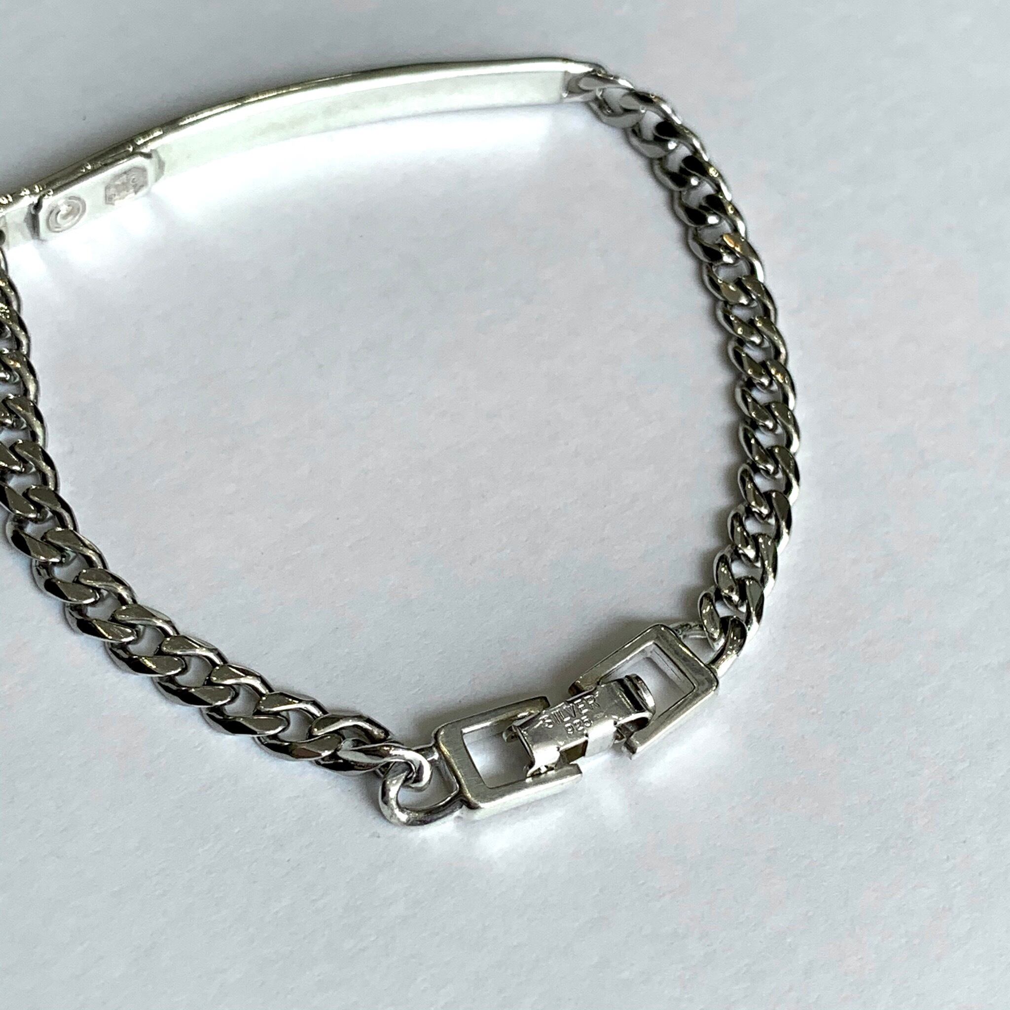 輝きの強いシルバーをふんだんに使用した、プレートとチェーンがコンビになったブレス。
