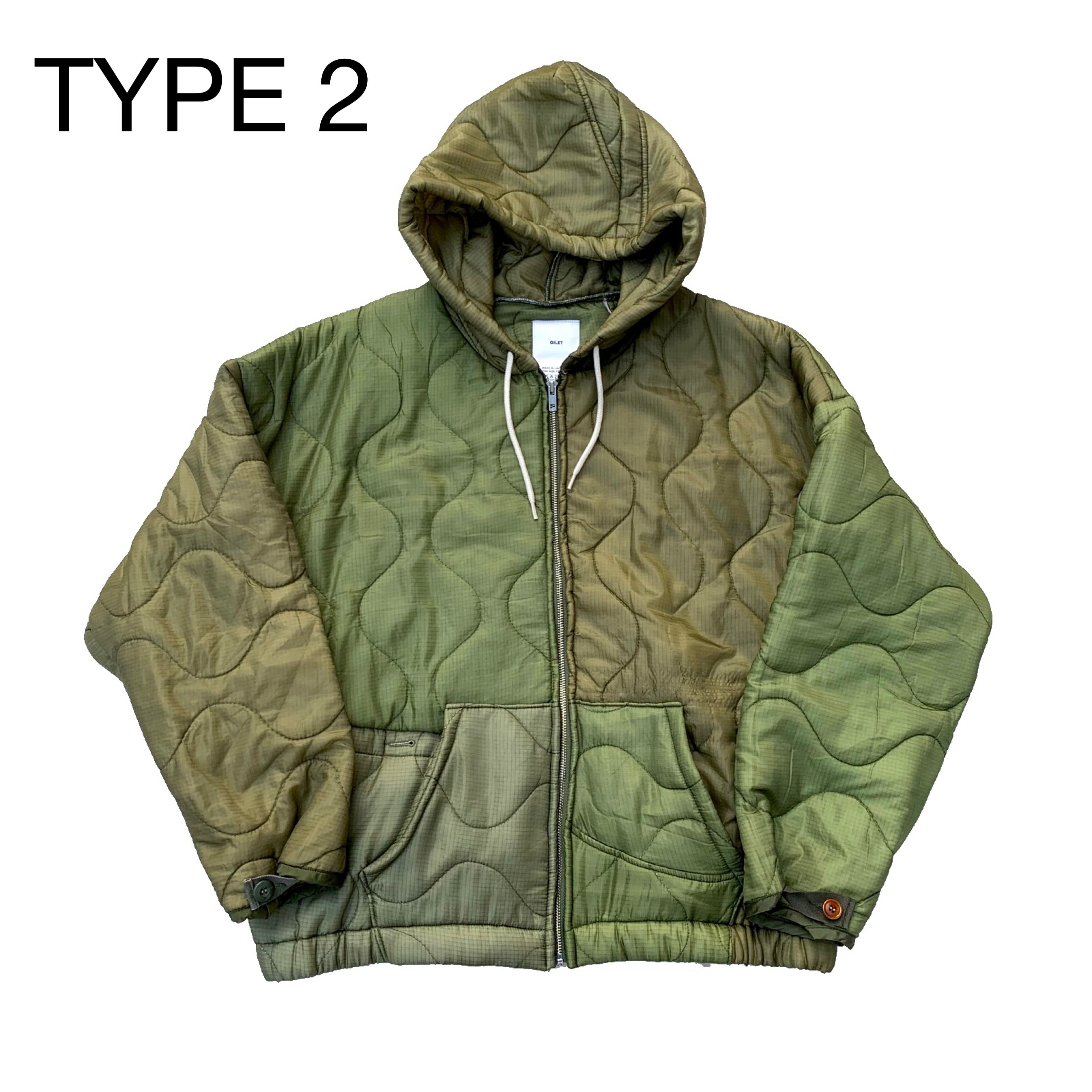 アメリカ軍M-65モッズコートの内側に付くキルティングライナーを解体し、パターン化したユルッとした、ZIPパーカーになります。
