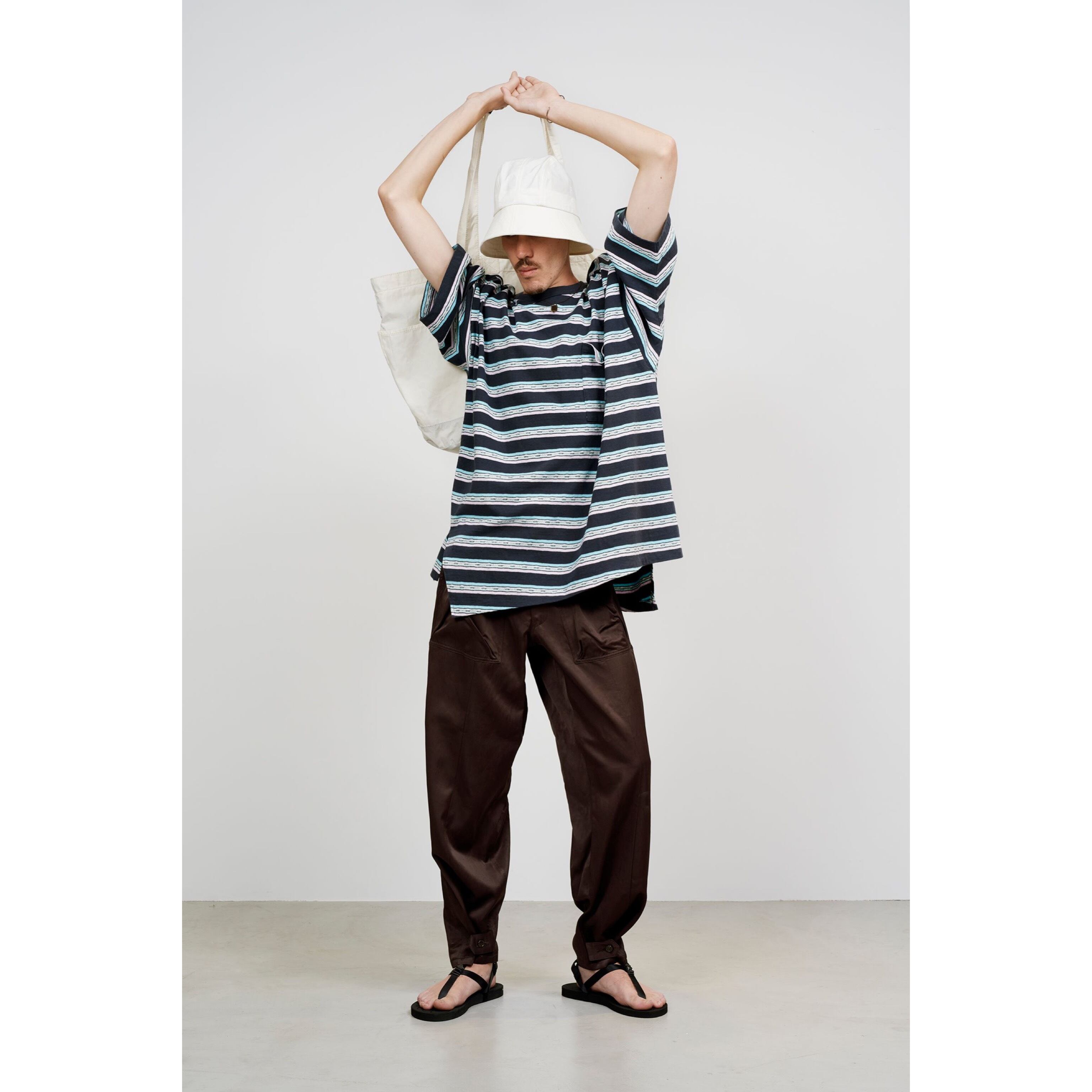 落ち綿を集めて作られた25番単ラフィー糸をジャガードで編んだオリジナルボーダー。