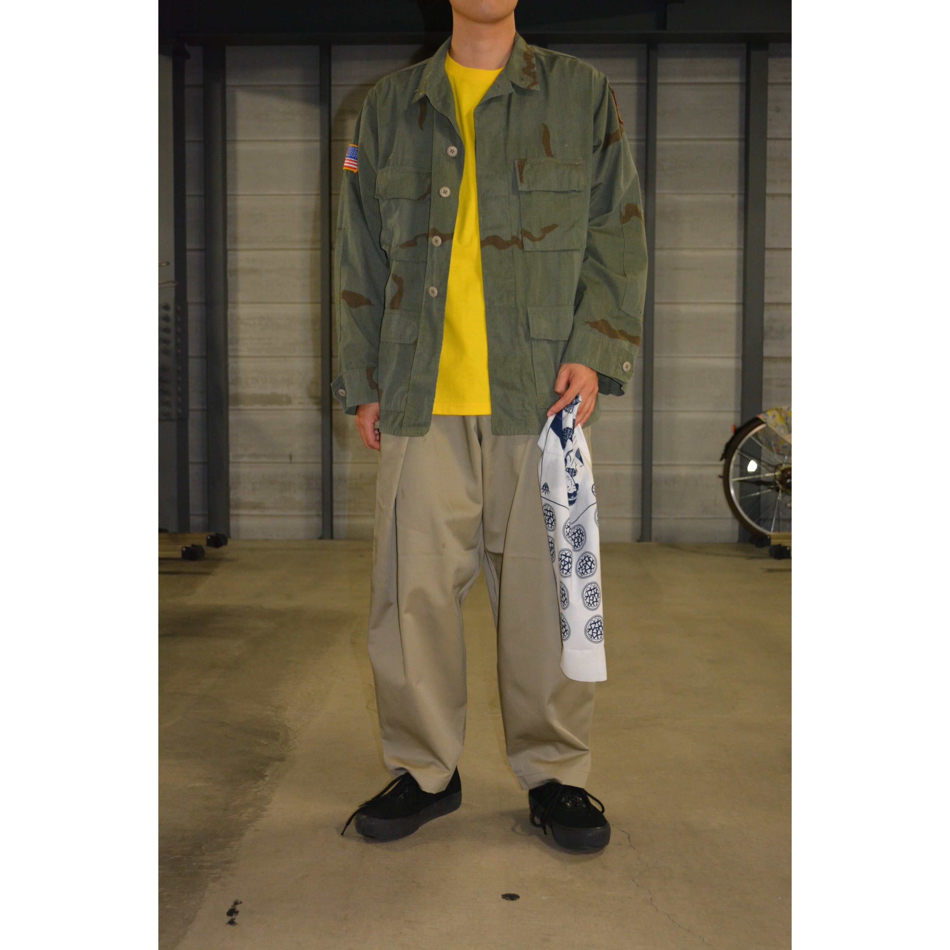 素材感はノリパリパリな感じではなく、ほどよくウォッシュがかかったしなやかなTCツイルになりますよ。