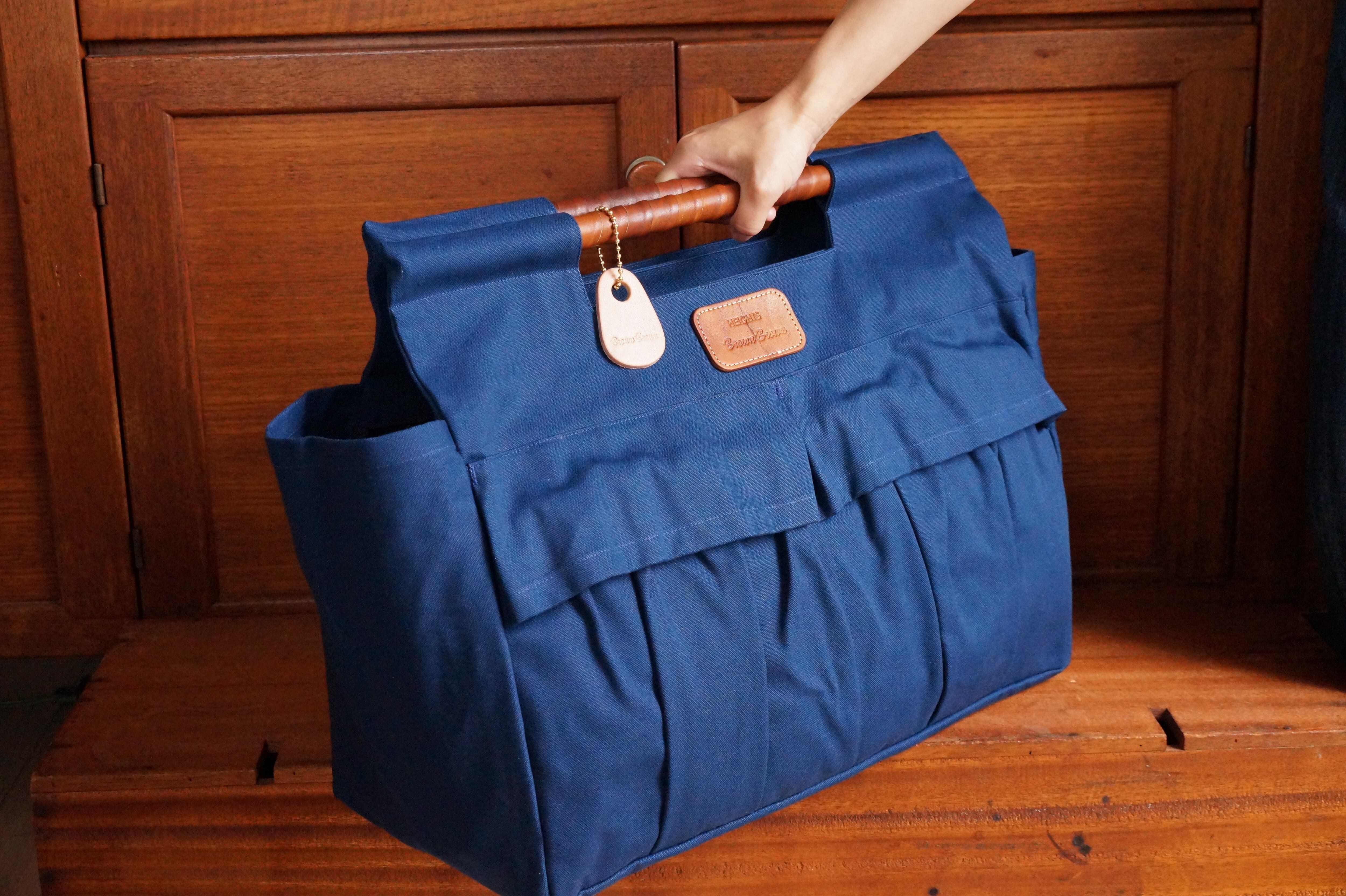 厚手のキャンバス地で縫い上げた大型のハンドルツールカゴバッグになります!