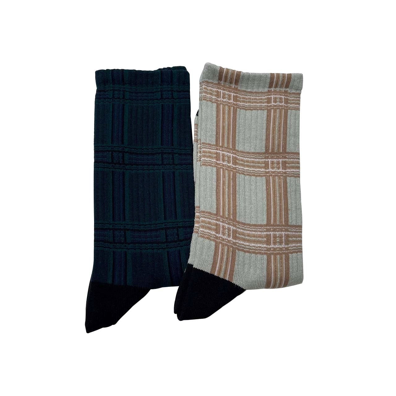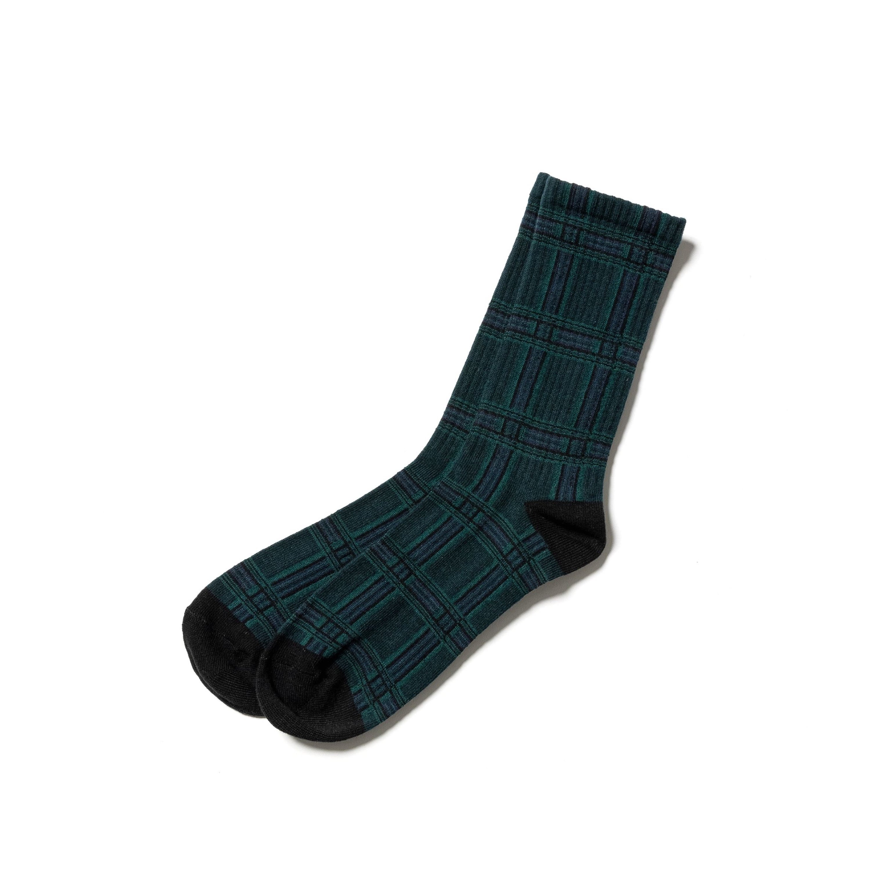 ミドルゲージのコットン / アクリル混のチェック柄ソックス。