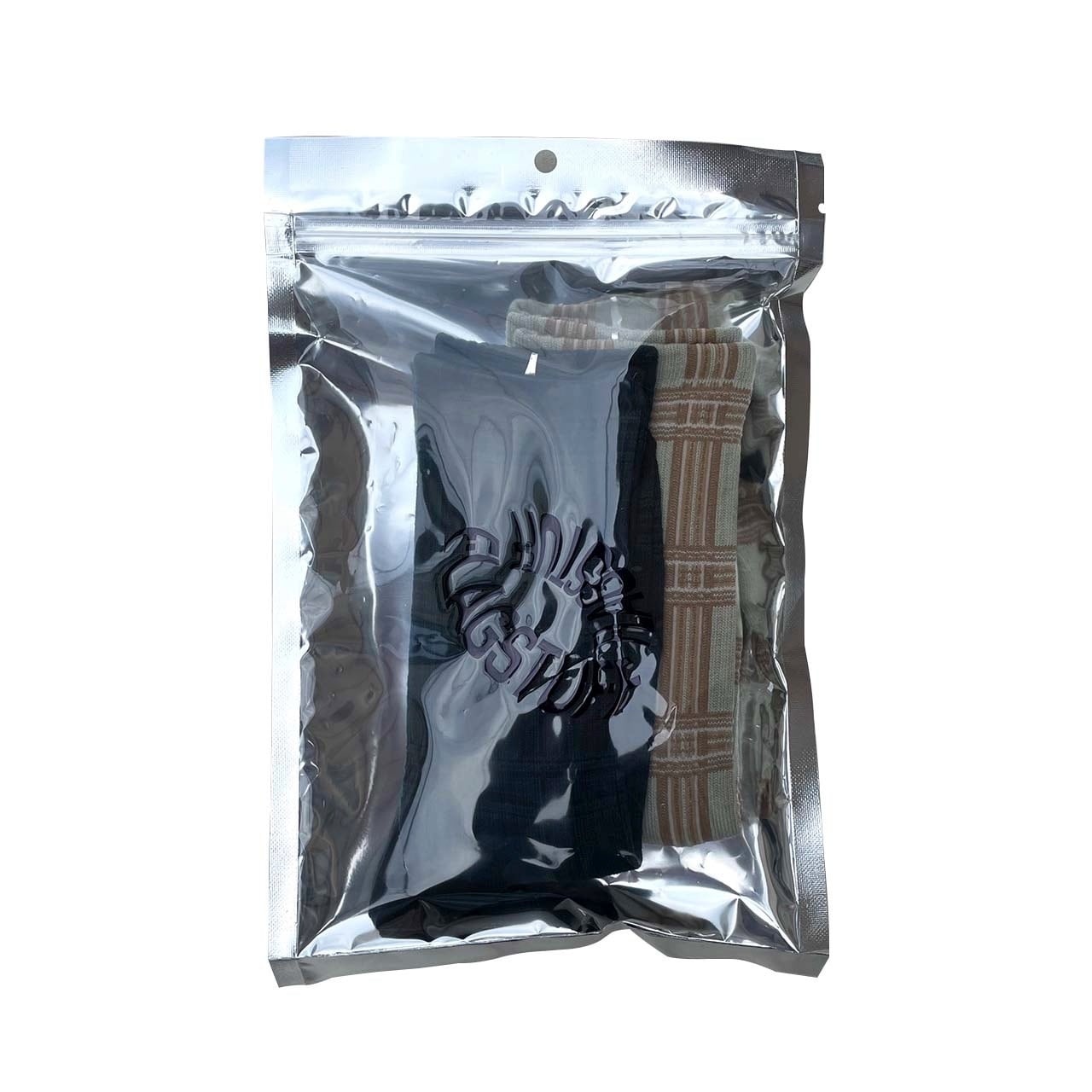 アクリル混にすることで強度を高め、スポーツソックスの背景で制作することでタフに仕上げている。