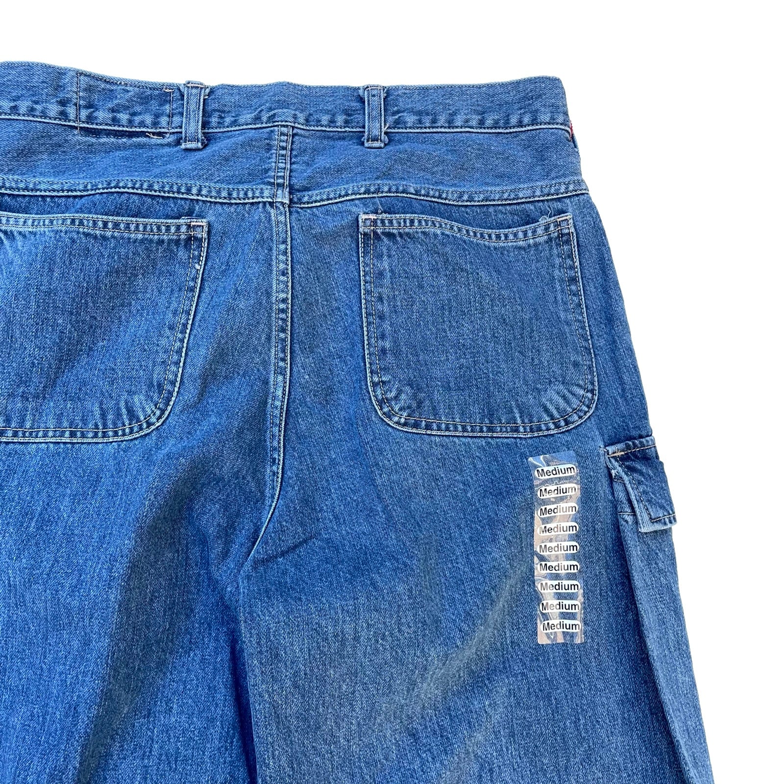 このカーブを下まで下げることによって、デニムカーゴパンツのカーゴポケットがとってつけたような見えかたにならず、フロントポケット→カーゴポケット→バックポケットと美しいトライアングルの配置が偶然にもできました!