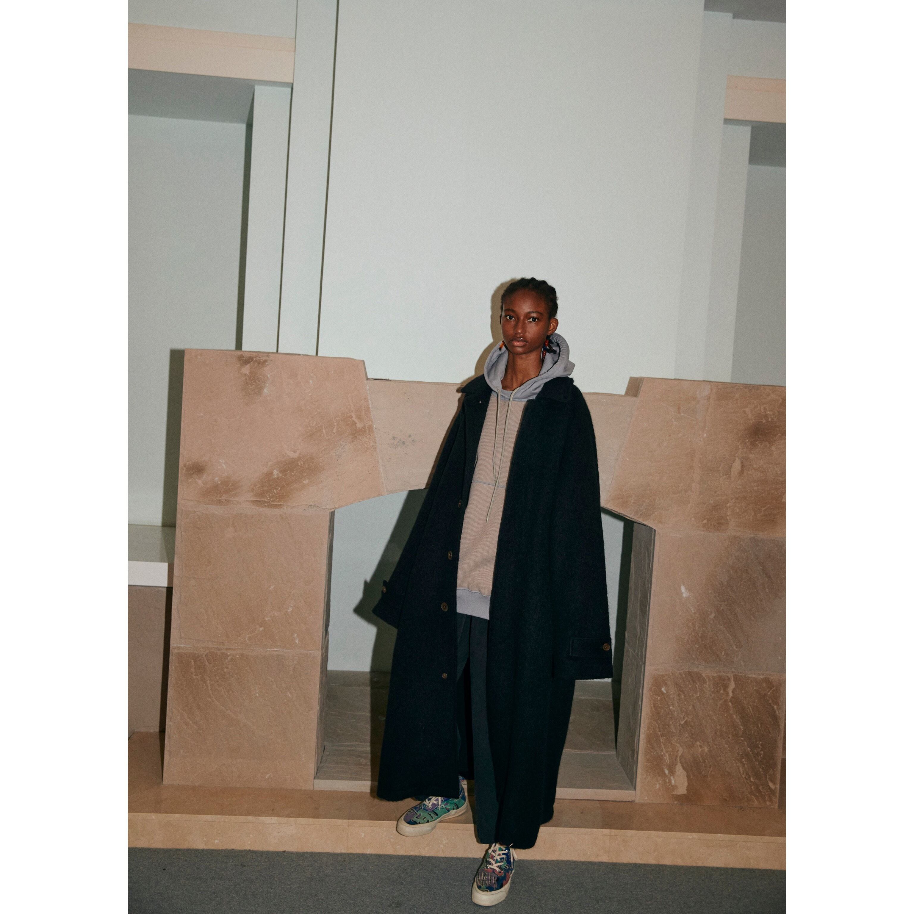 裏面は見頃がワッフル、フードがスウェットのコンビフーディーに。
