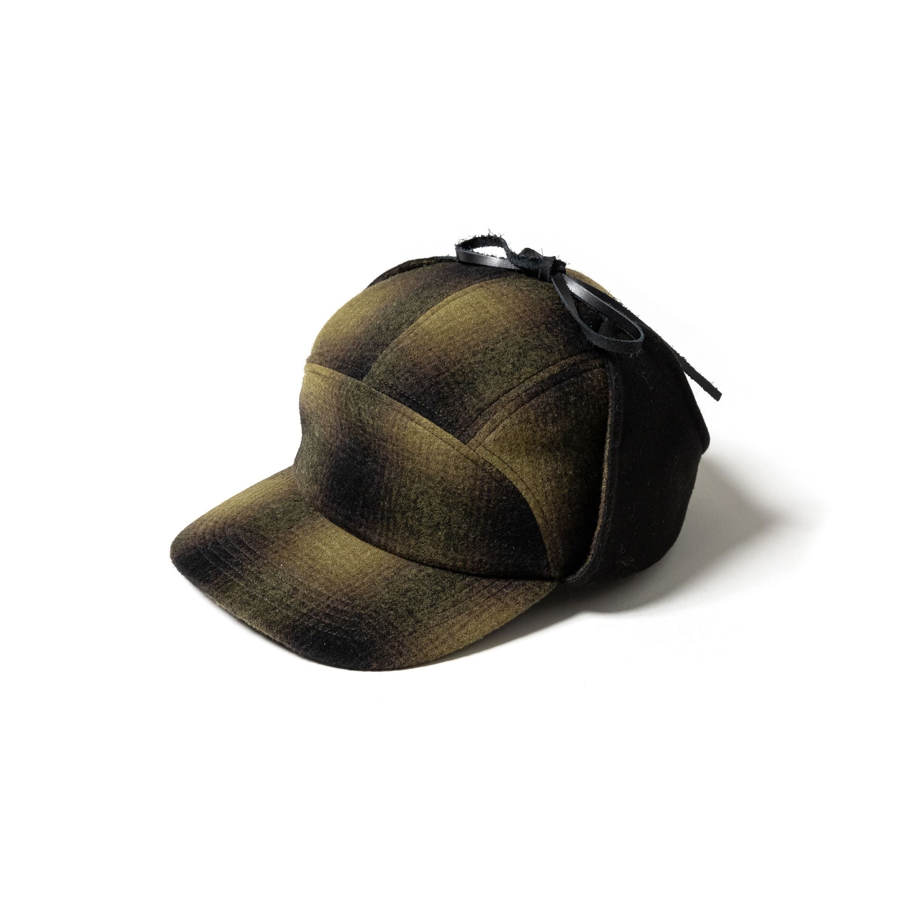 オーセンティックなオンブレチェックウール生地を使用したフライトキャップ。