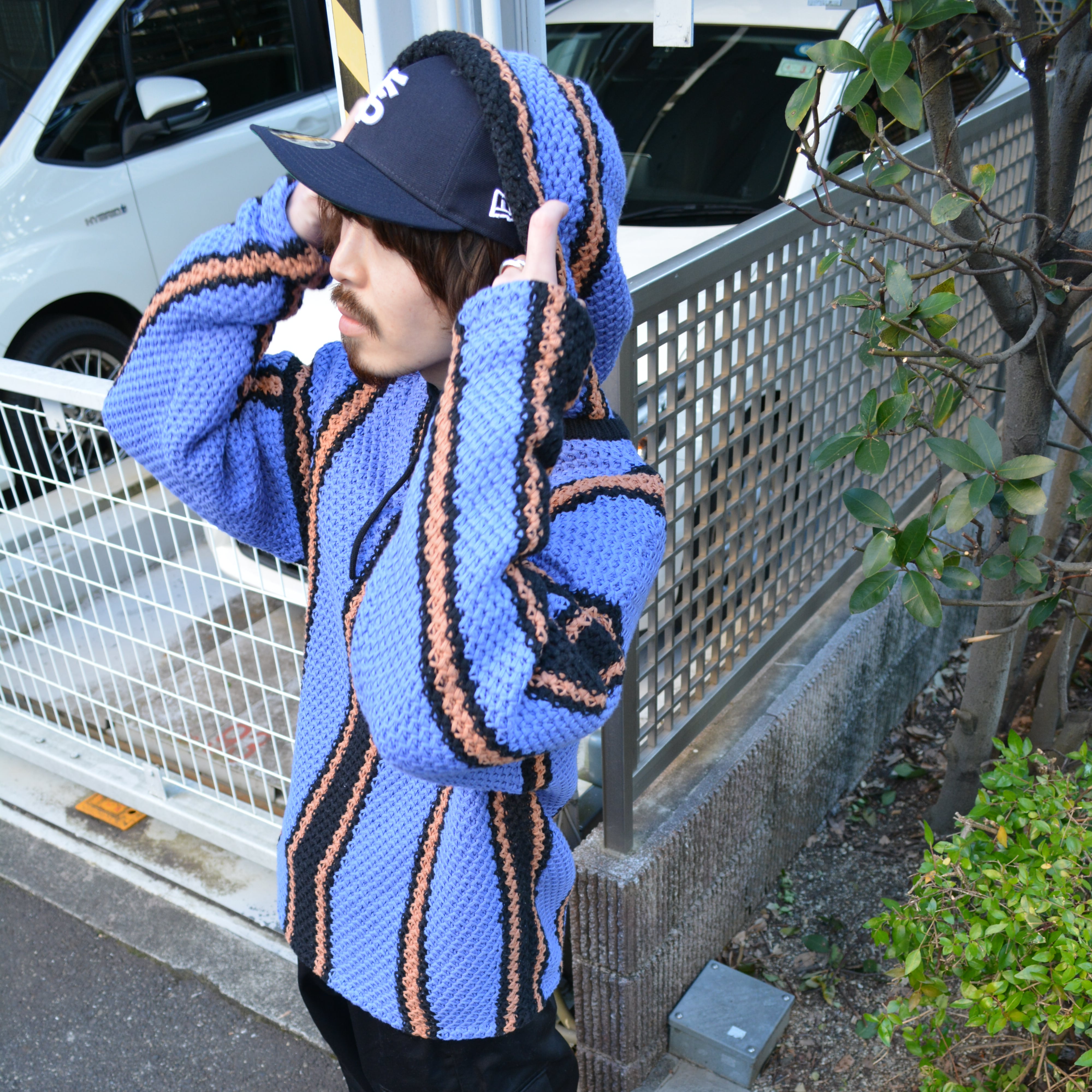 メキシカンパーカーモチーフのニットプルオーバー。