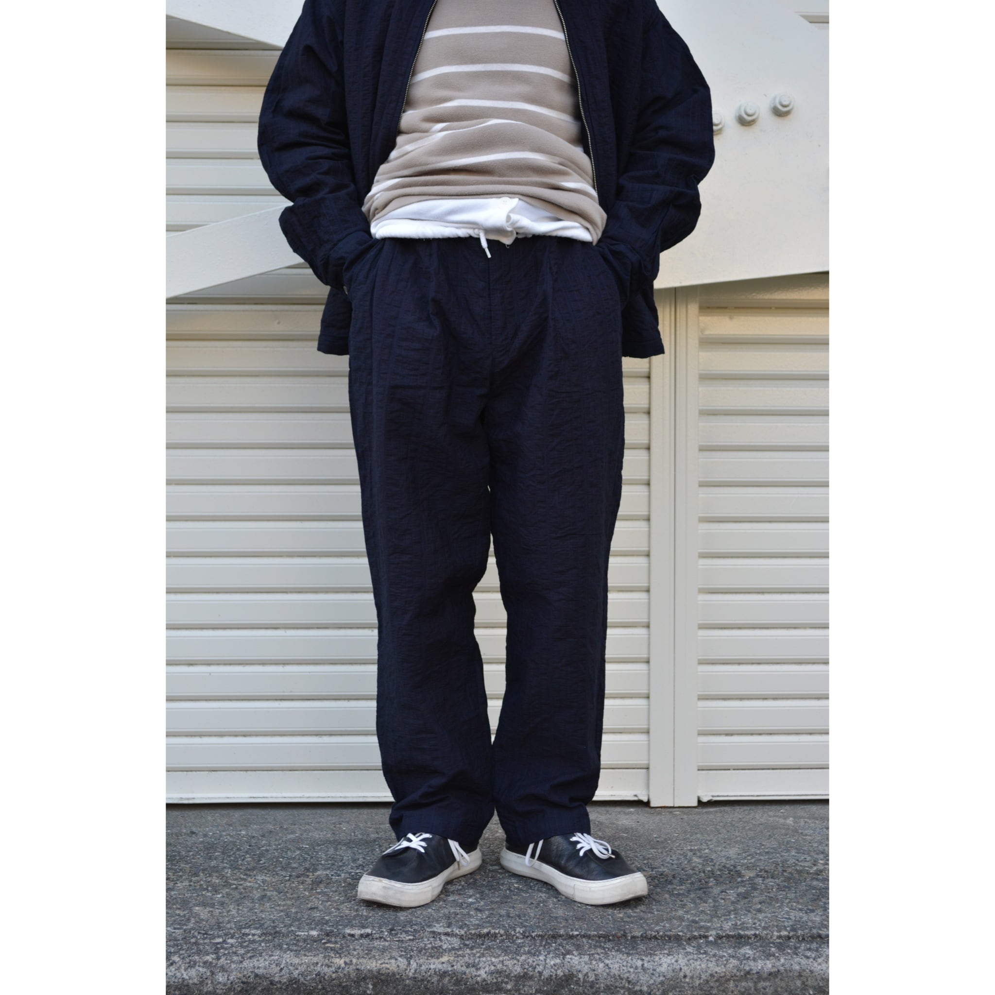 70年代のビンテージファブリックを再現したオリジナルストライプジャガード生地を使用したワンタックワークトラウザーズ。