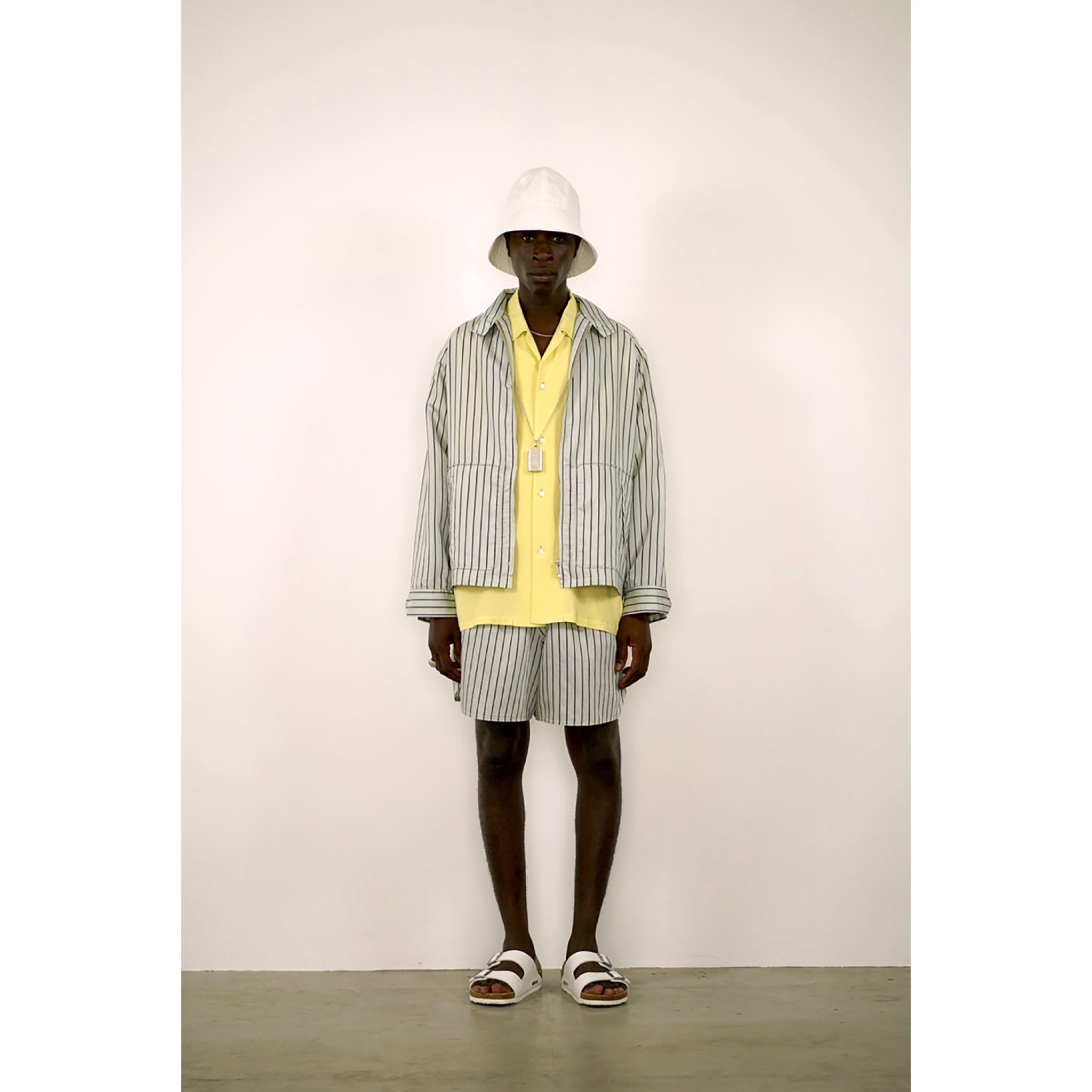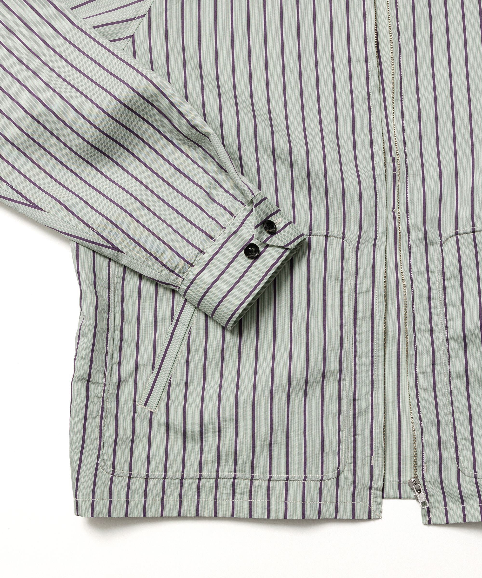 古いディテールだが重くならずに清涼感のあるストライプ素材ですっきりとした印象に落とし込んだドリズラージャケット。