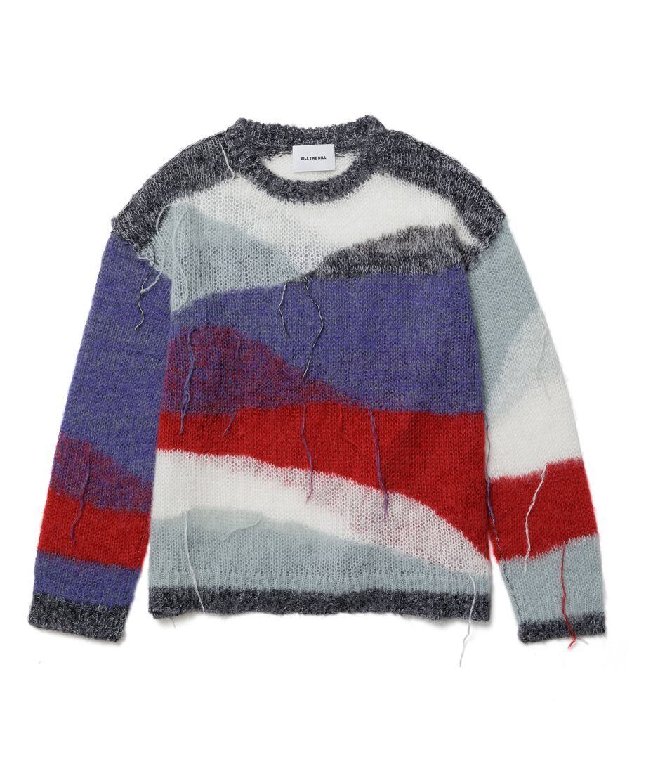 複雑なカラーリングのインターシャ編みアルパカニット。