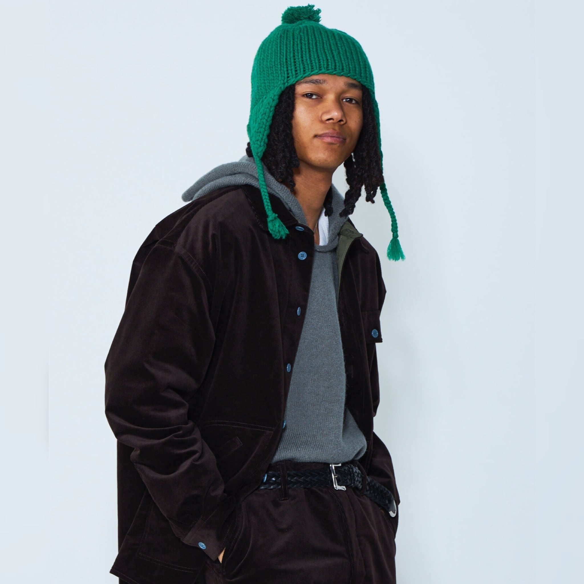 細番手の上質なカシミア混の糸を本数取りすることで滑らかでチクチクしないふっくらとしたタッチになっている。