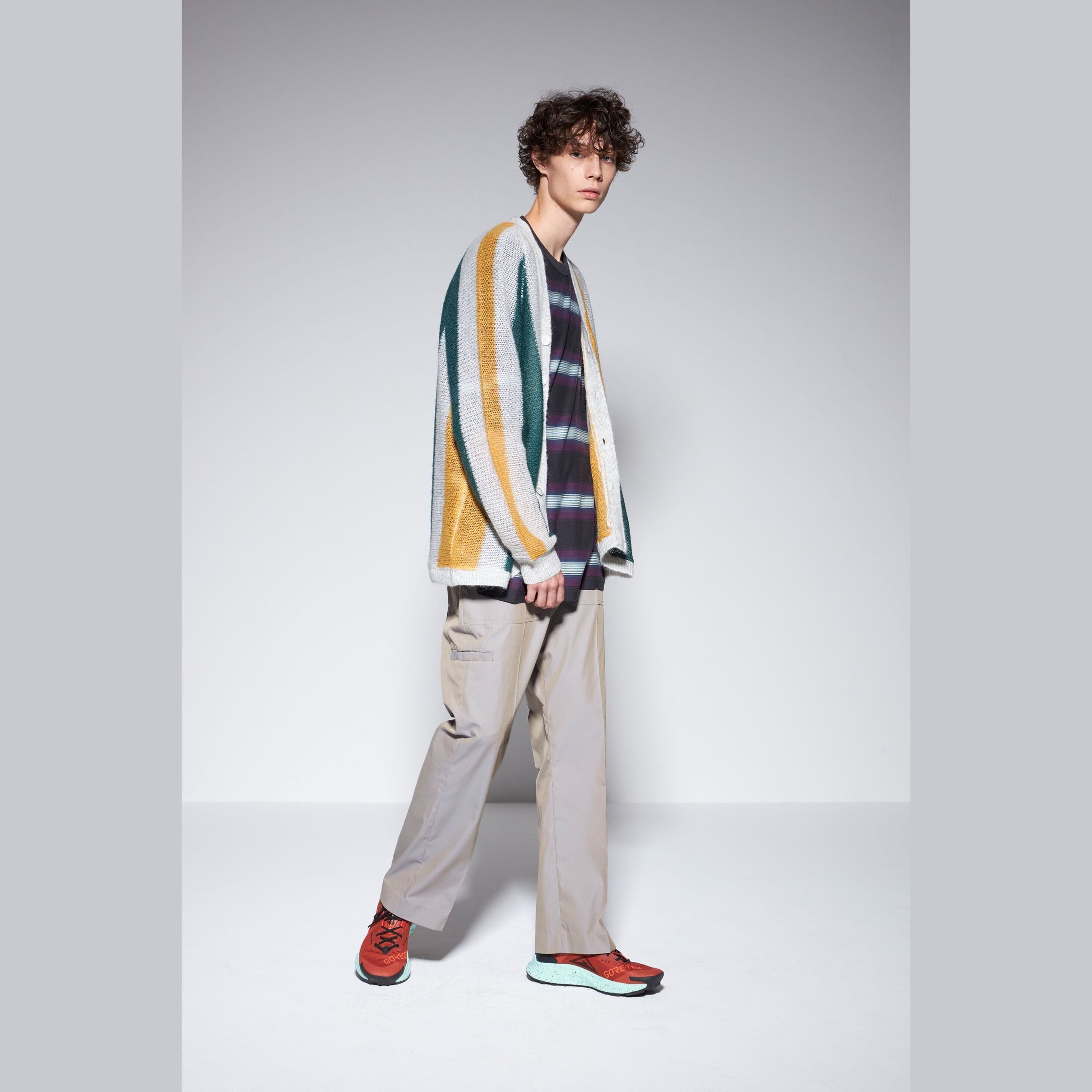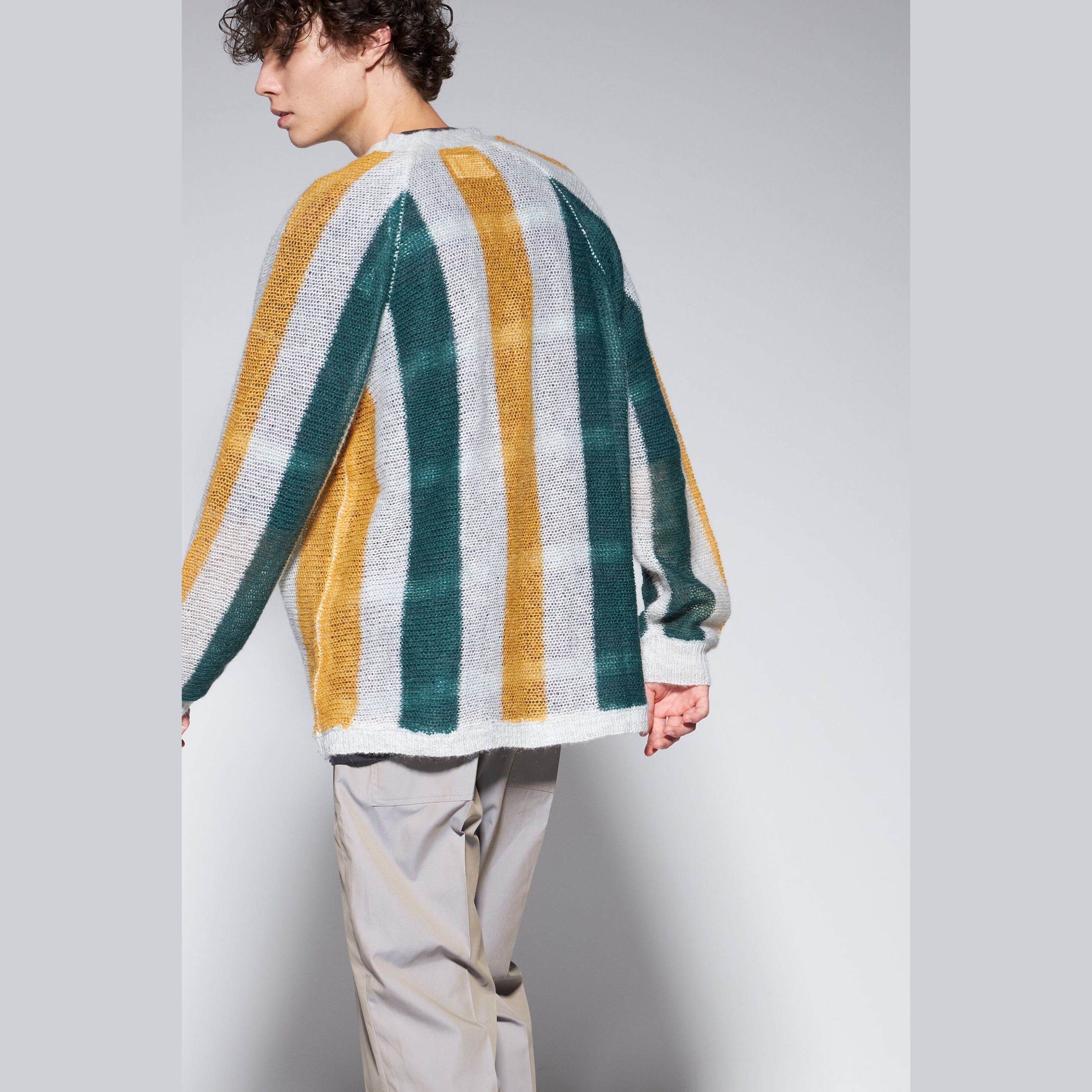 ローゲージで目の詰まっていないストライプカーディガン。