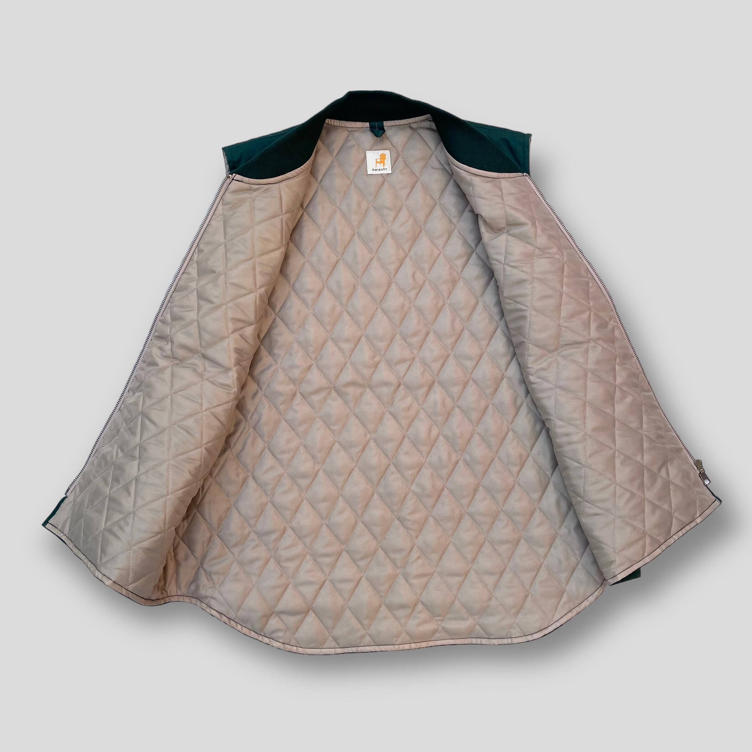 カラーは春デニムとあわせたかったので、NAVYとGREEN、ライナーはベージュのベーシックダイヤキルトです。
