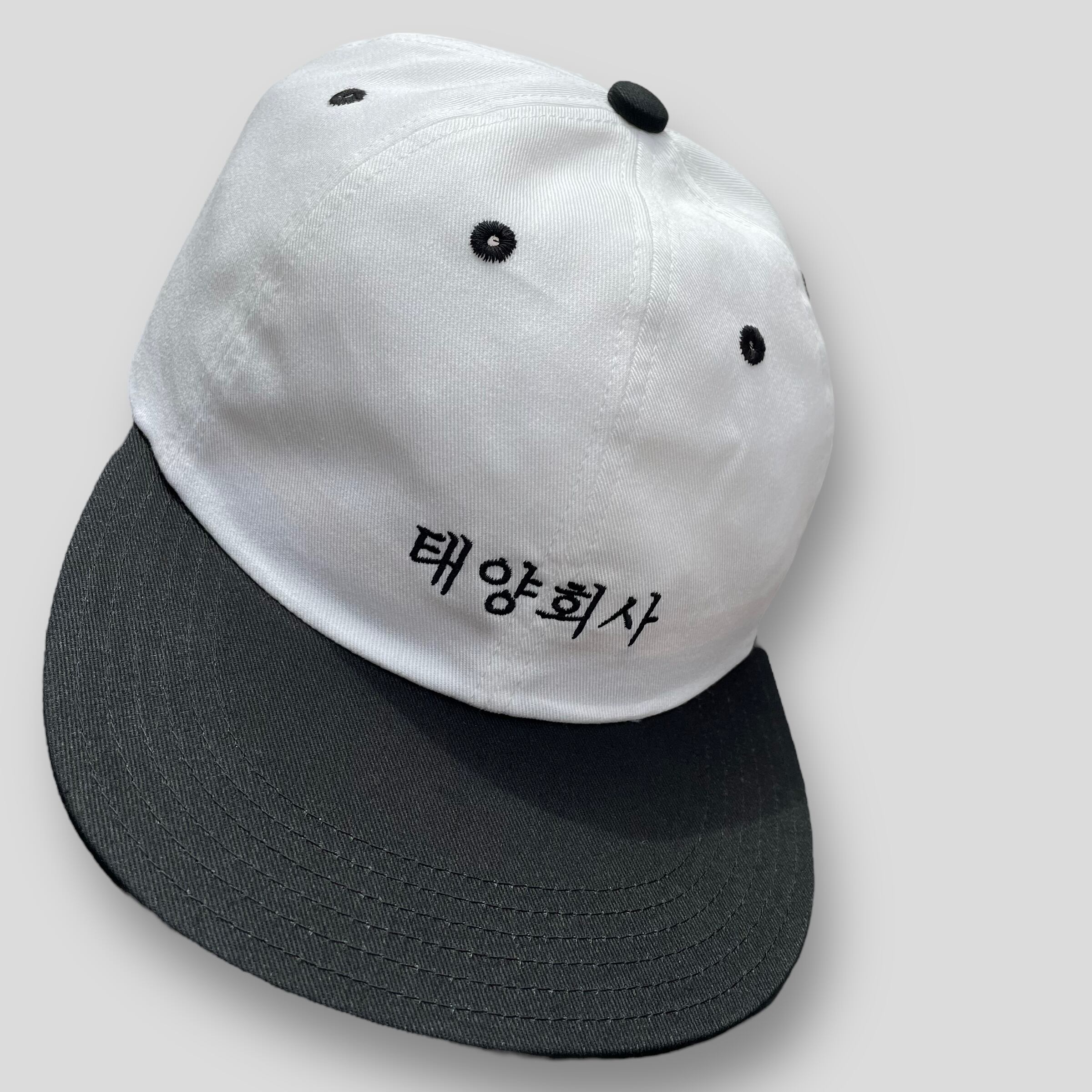 ハングル文字で[太陽会社-SOLARIS&CO.]とカンパニーネームの刺繍を施した6パネルキャップ。