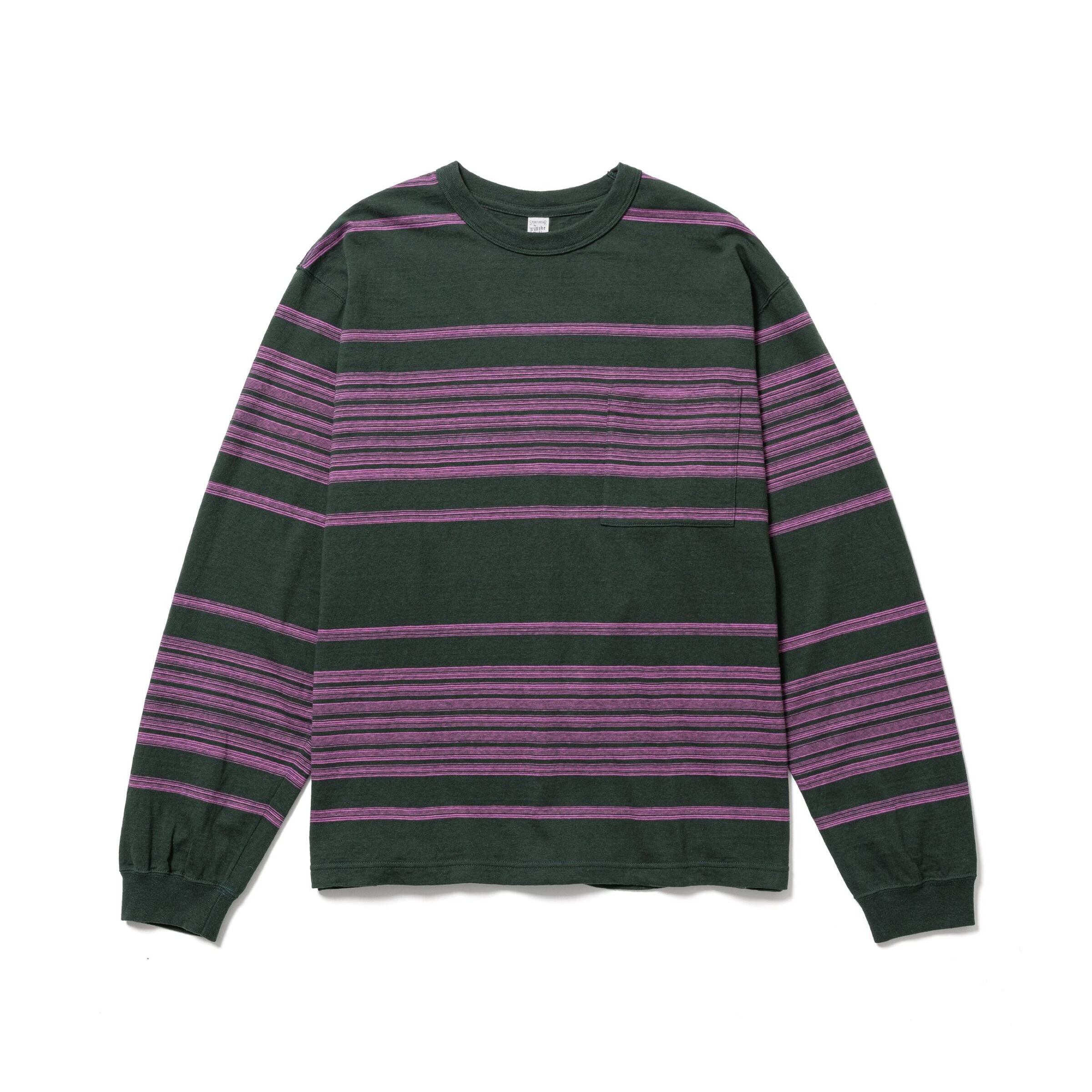 ランダムな太さのボーダーがポイントのパネルボーダーのロンT。