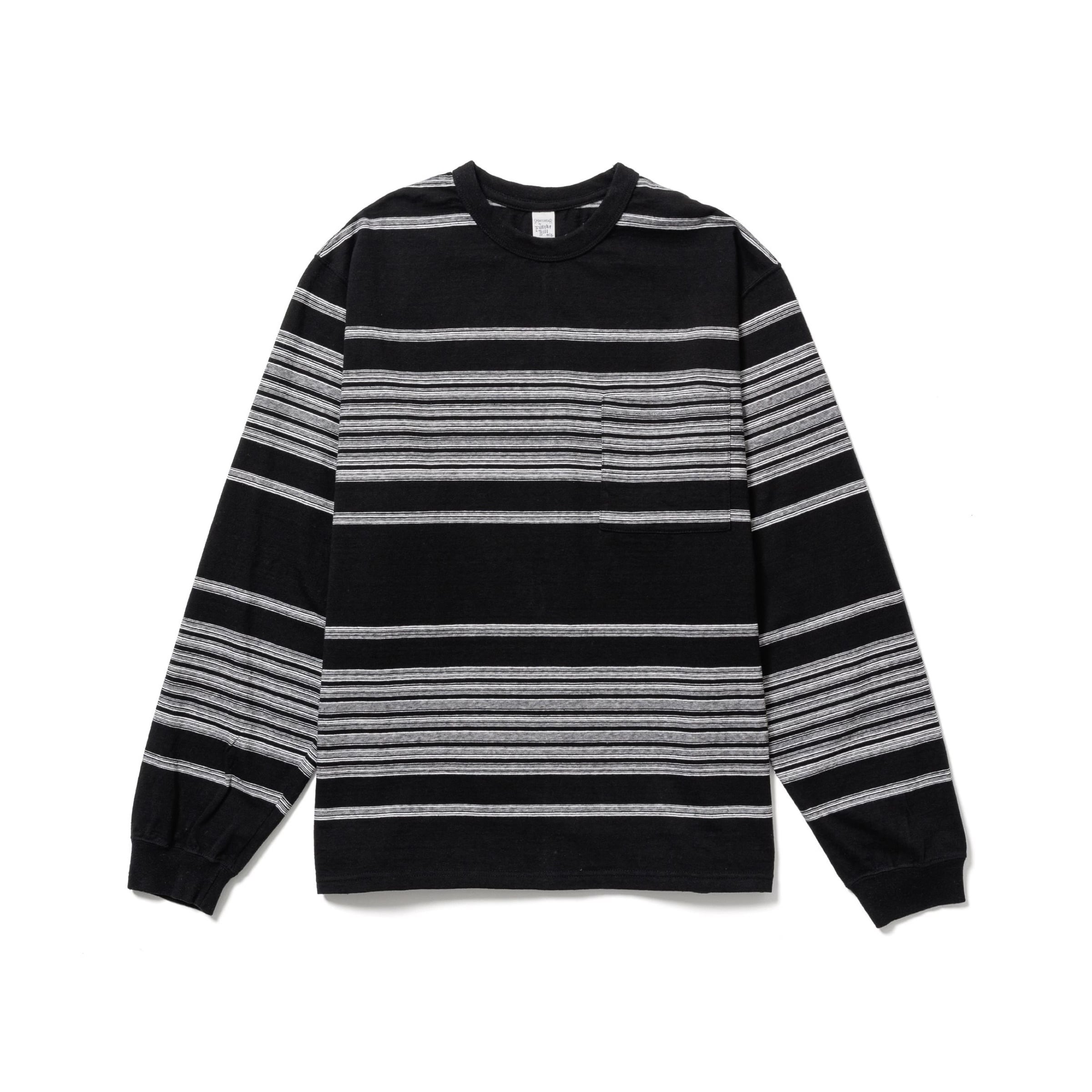 ランダムな太さのボーダーがポイントのパネルボーダーのロンT。