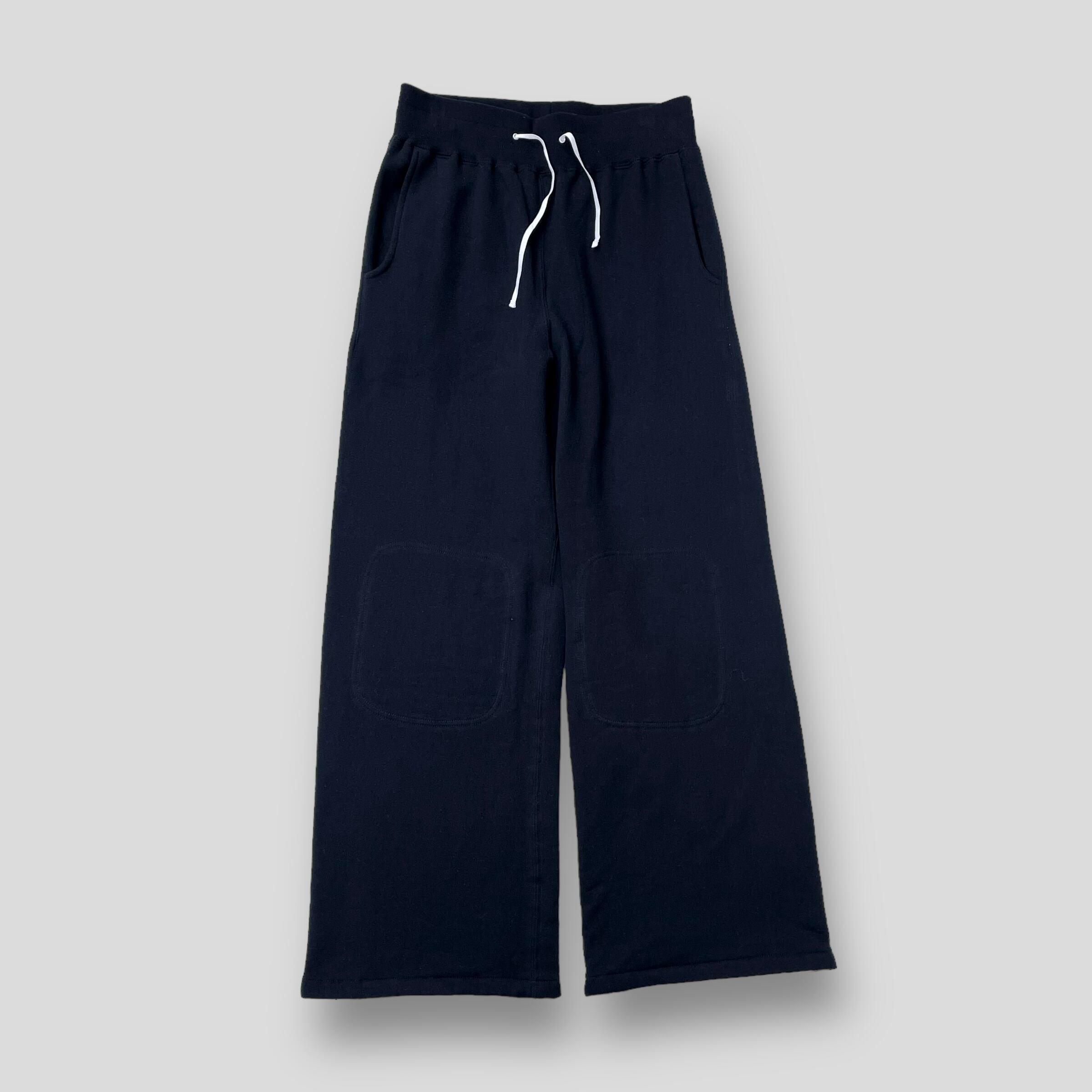スウェットパンツ特有のヒップ周りのもたつきをバランスをとりながら削り、穿いた時のシルエットがトラウザーズのように綺麗に見えるよう設計。