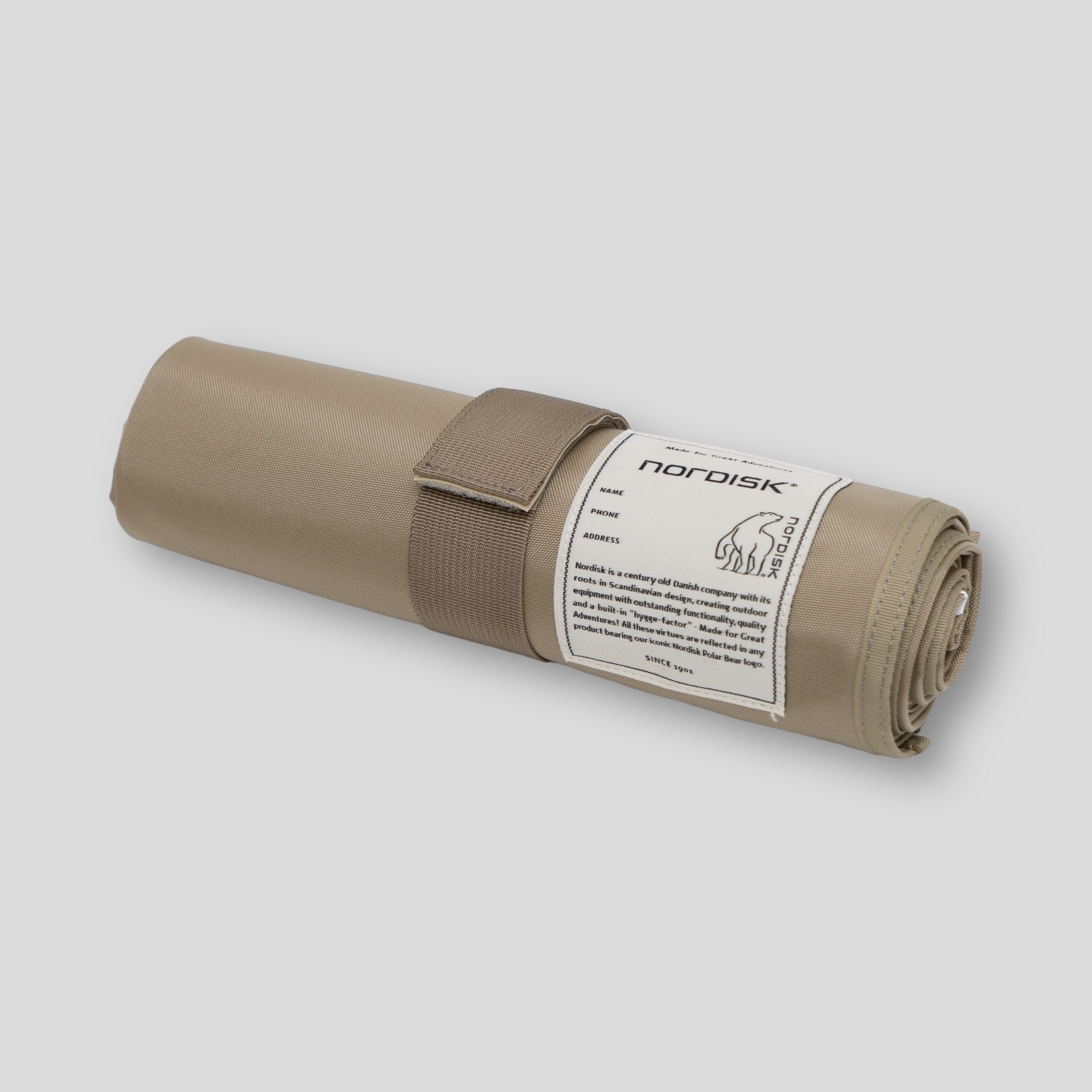 摩擦や引裂に強いナイロンオックスを使い裏面にPVコーティングを施すことで地面の濡れで染込まないようにデザインされています。