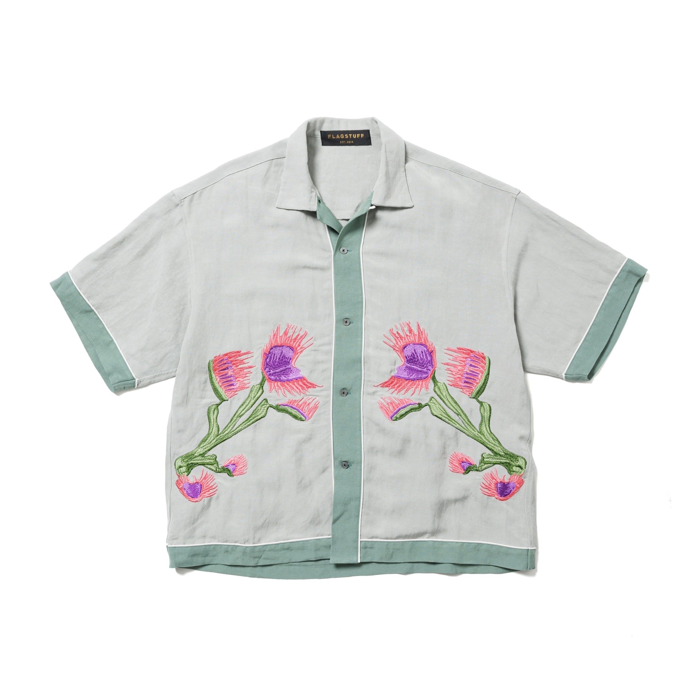 フロントにボタニカル刺繍を施したオープンカラーシャツ。