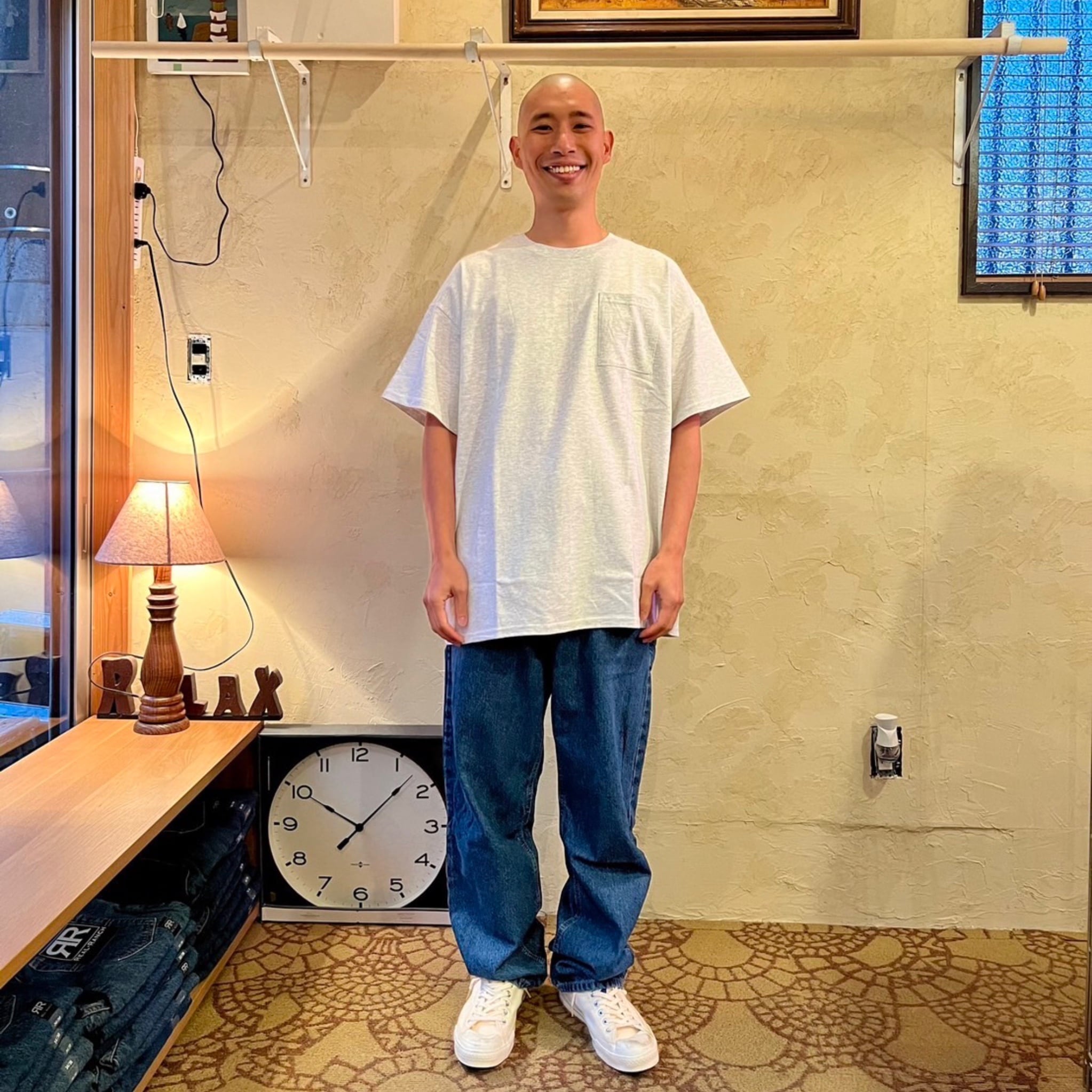 弊社プライベートメーカーRelaxfitもUS企画のGILDANをベースに物作りをしているものがございます。そのため、縫製が雑だったり、サイズがちょっとおかしかったり、保管汚れのためシミがあったり、とそれも含めて、アメリカの大アジな部分がカッコ良かったりします。