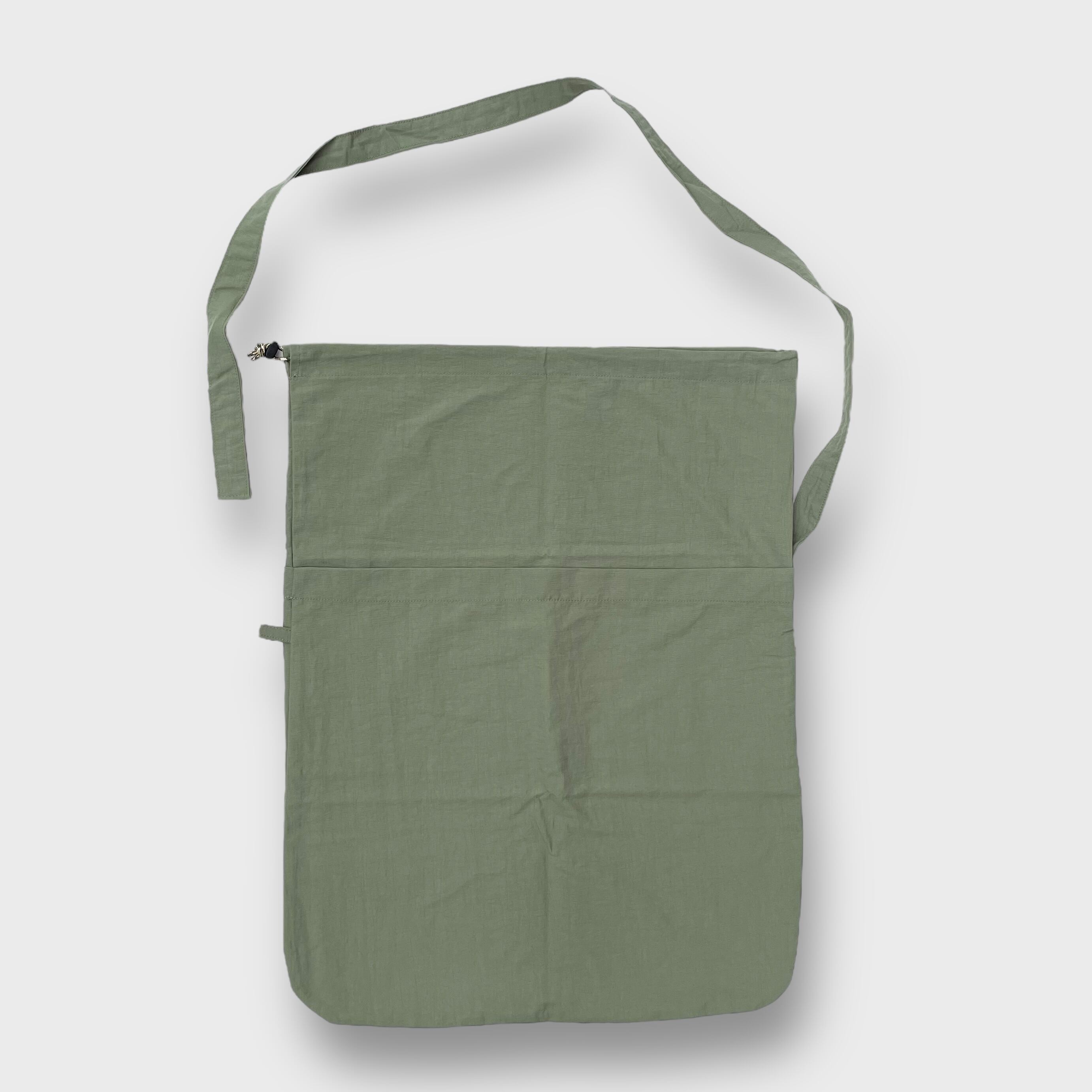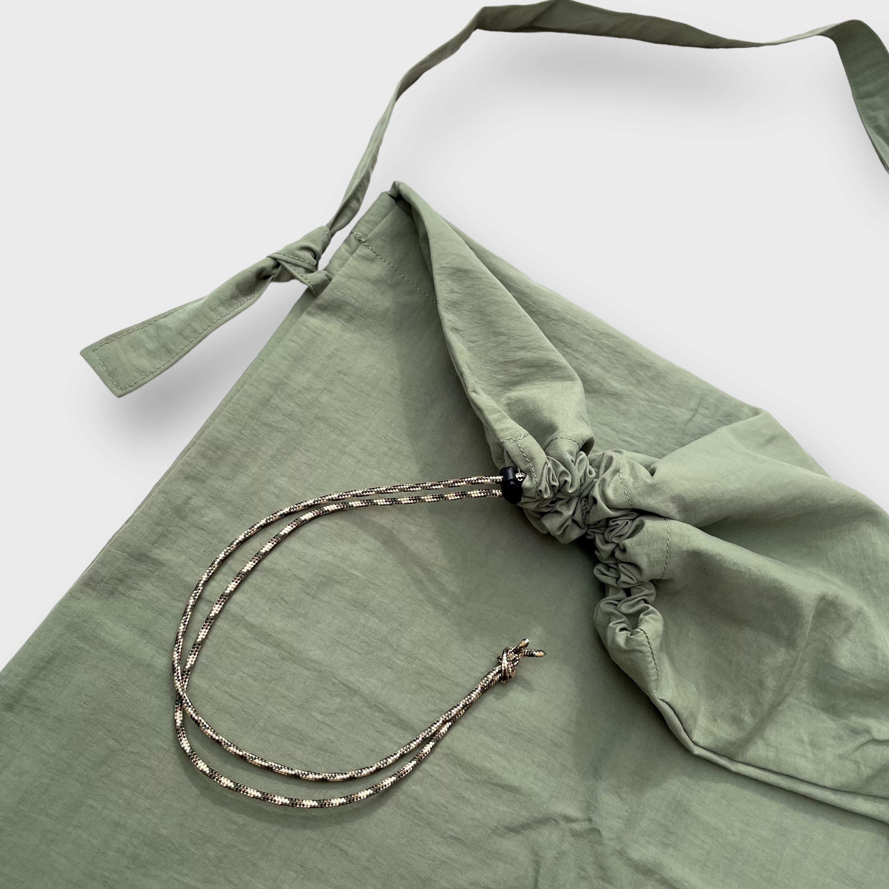 ただの袋を折った部分に巾着紐を通して、ものが落ちないばかりか、容量も増えてしまうという便利なバックですー!