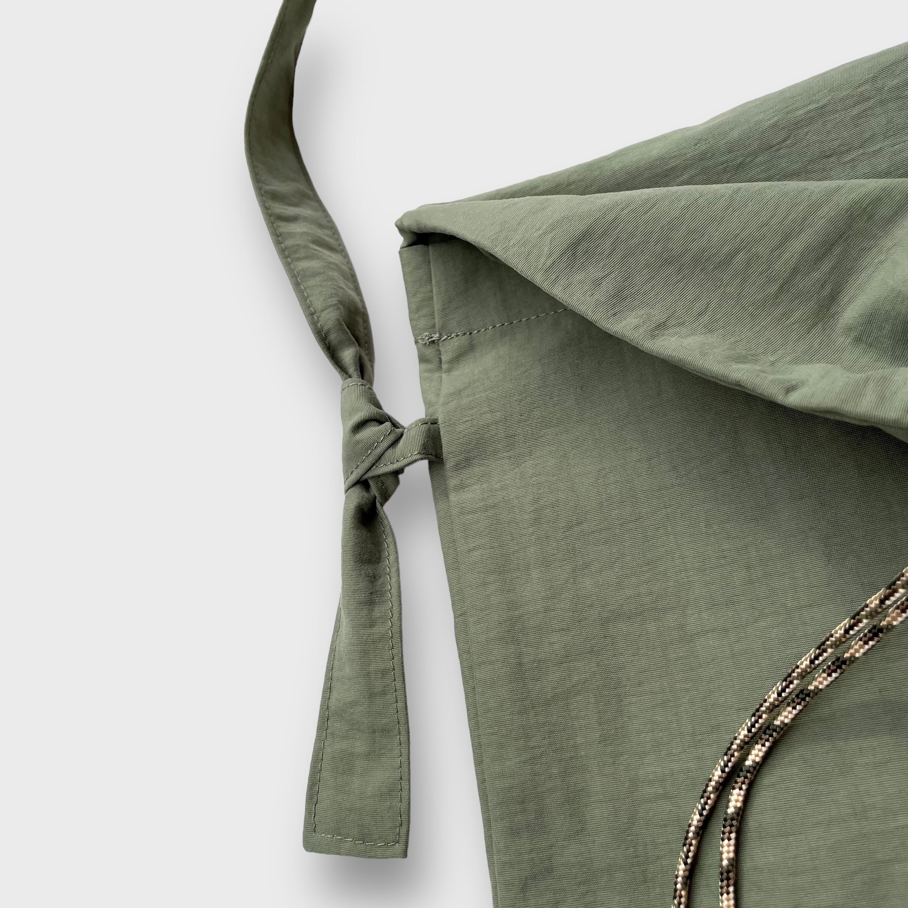 ショルダー部分の紐は片方にループがあるのでそこに通して、お好みの長さに調整できるので、斜めがけ、肩かけ、場合によってはウエストバックにもなりますー。
