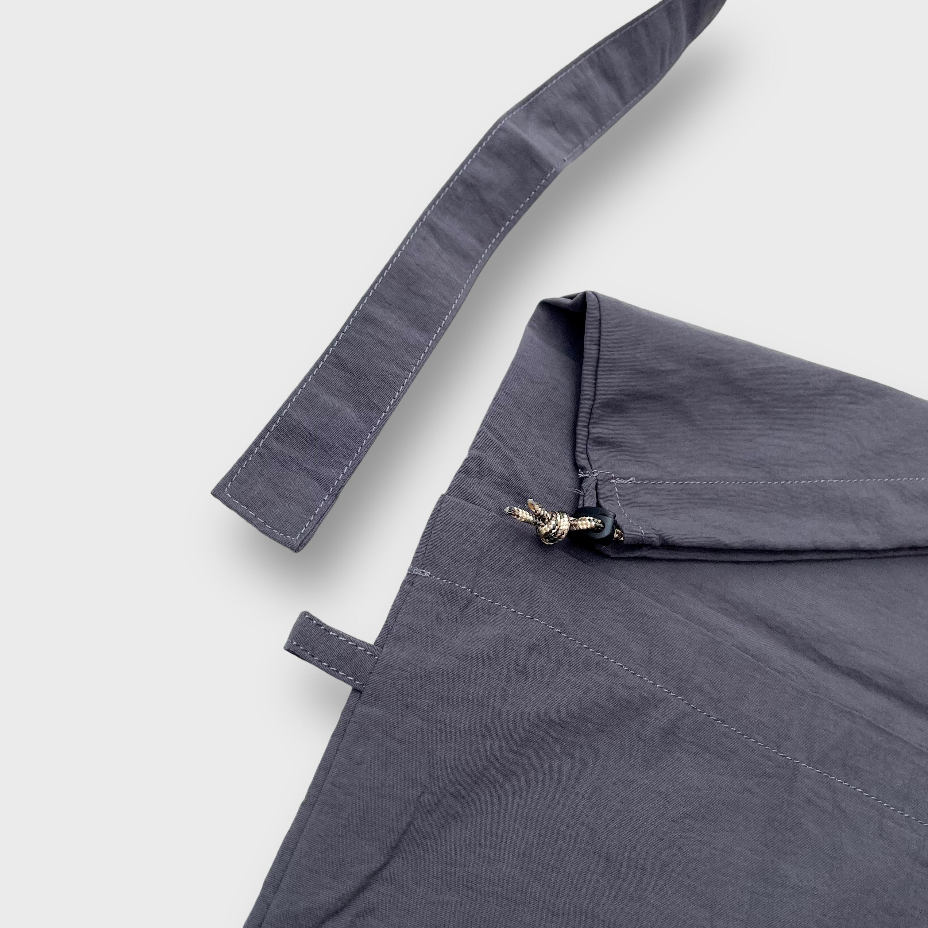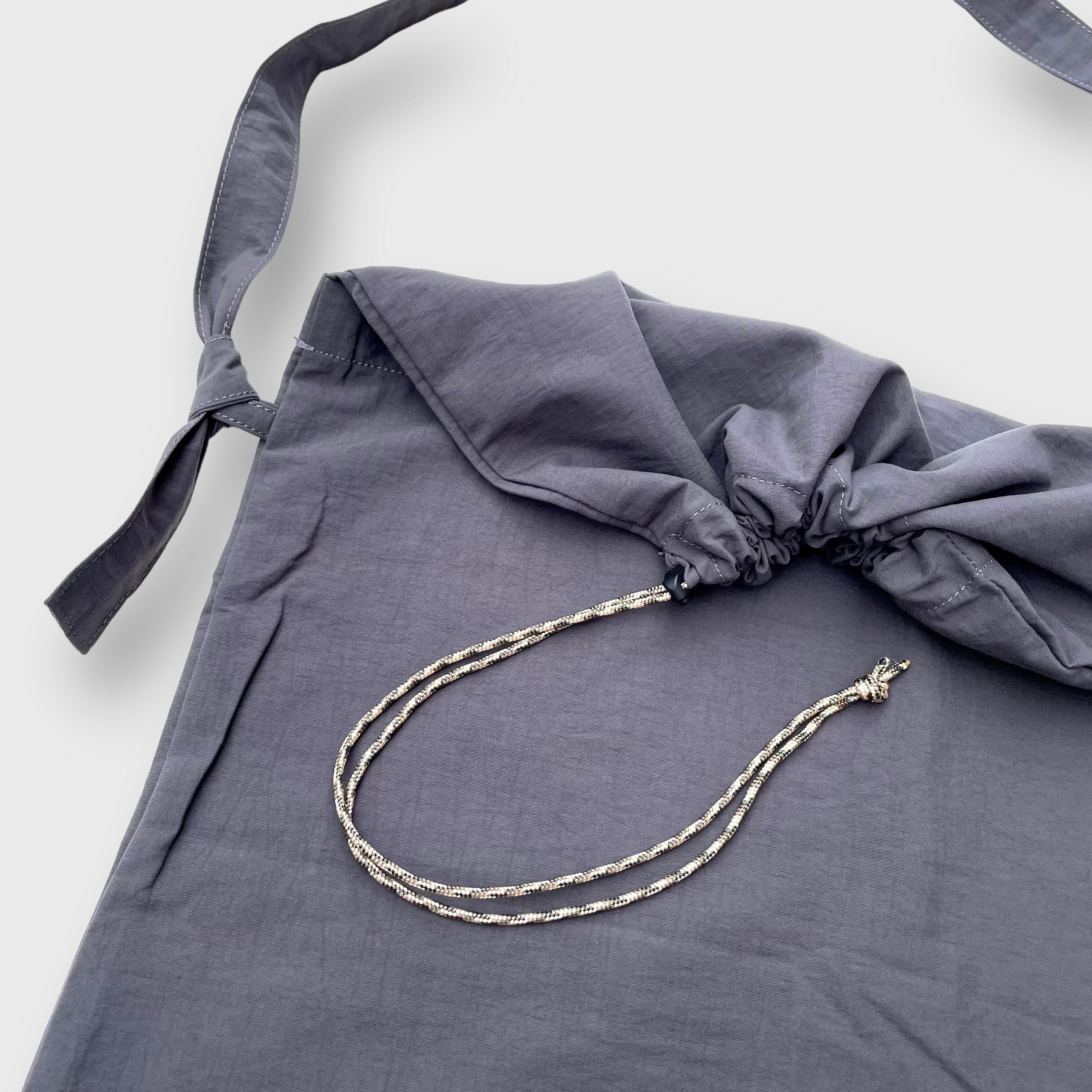 ただの袋を折った部分に巾着紐を通して、ものが落ちないばかりか、容量も増えてしまうという便利なバックですー!
