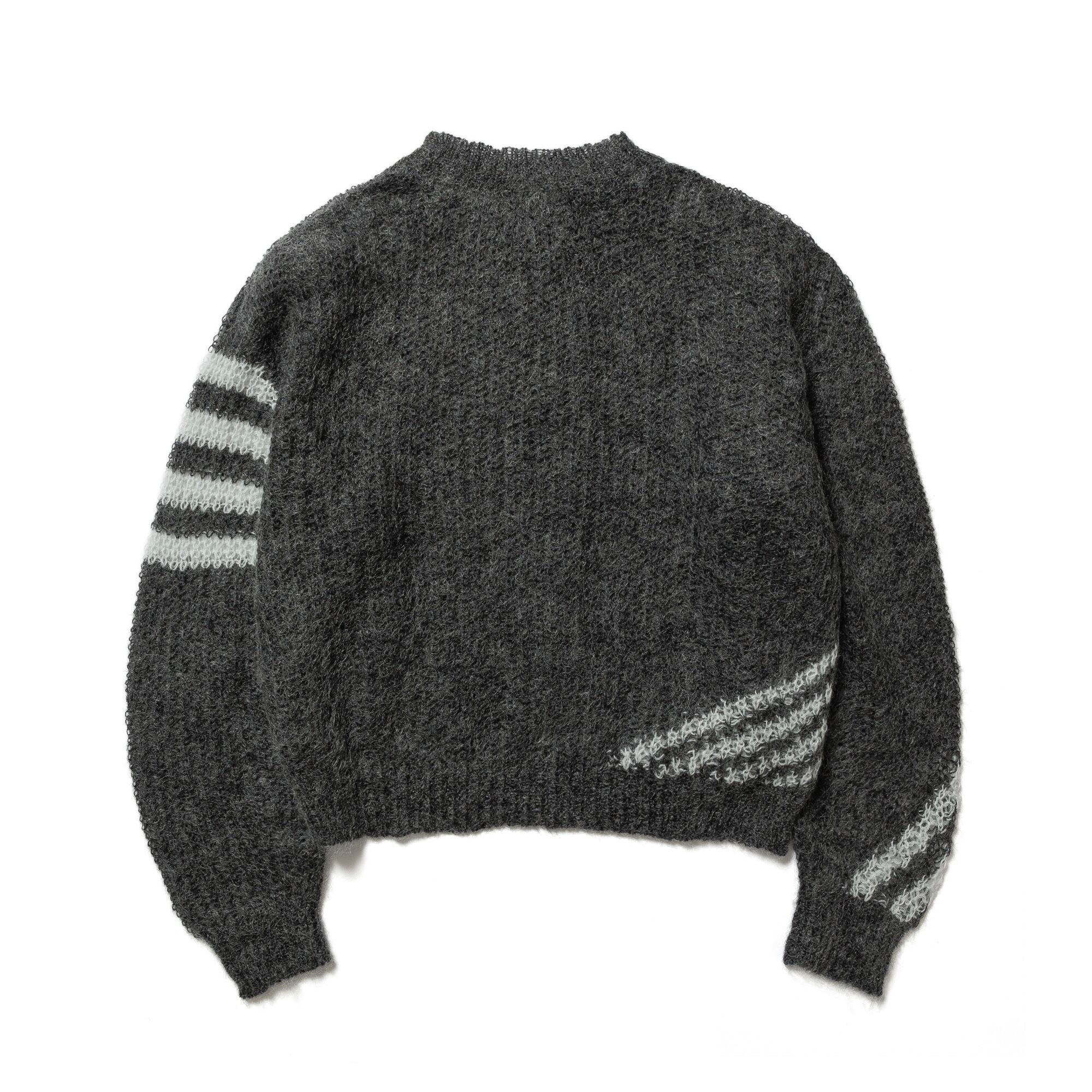 モヘア混の糸に起毛加工を施すことで、柔らかくふくらみのある風合いに仕上げている。